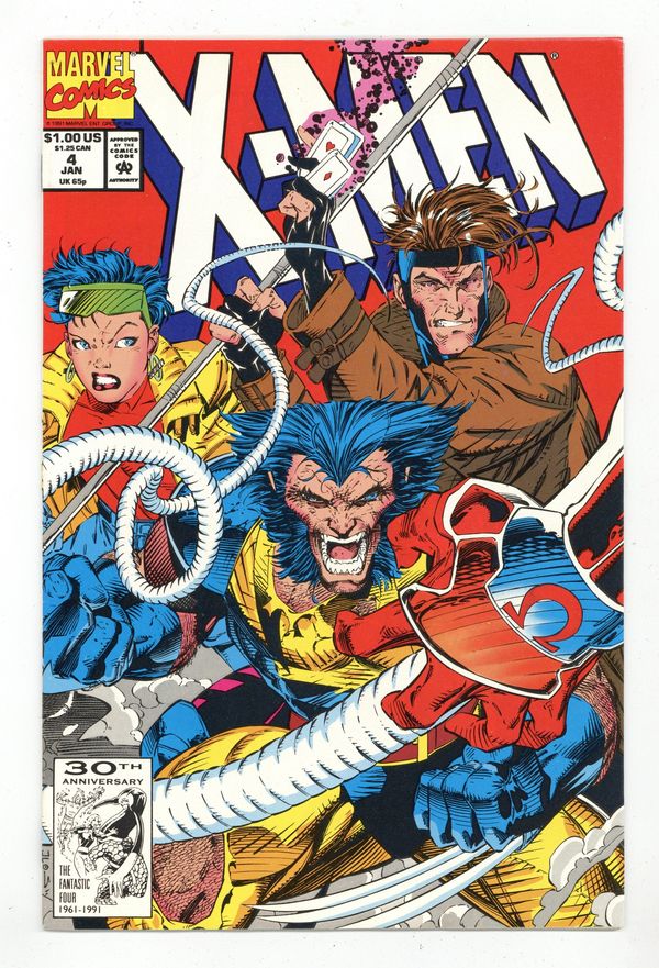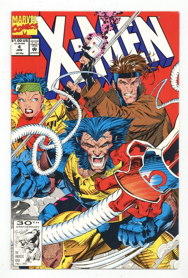 Tags: X-Men$10.50Direct Edition. Cover pencils by Jim Lee, inks by Scott Williams. The Resurrection and the Flesh, script by Jim Lee (Plot) and John Byrne, pencils by Jim Lee, inks by Scott Williams. First appearance of Omega Red! The Hand brings Omega Red (formerly Arkady) back to life; The X-Men play basketball, mutant style; Moira agonizes over her part in the Magneto fiasco and leaves; Gambit and Rogue are on the way to a chaperoned date when Omega Red and the Hand interfere. Cover price $1.00.