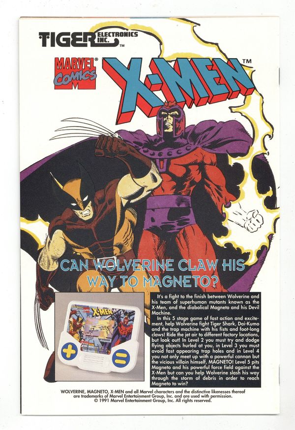 Direct Edition. Cover pencils by Jim Lee, inks by Scott Williams. The Resurrection and the Flesh, script by Jim Lee (Plot) and John Byrne, pencils by Jim Lee, inks by Scott Williams. First appearance of Omega Red! The Hand brings Omega Red (formerly Arkady) back to life; The X-Men play basketball, mutant style; Moira agonizes over her part in the Magneto fiasco and leaves; Gambit and Rogue are on the way to a chaperoned date when Omega Red and the Hand interfere. Cover price $1.00.