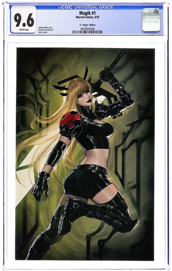 Joint Retailer (Knight of Comics, Comic Kingdom, ComicXposure, Fury Comix, and Nerdy Girl) Exclusive Virgin Cover by Leirix Li. Written by Ashley Allen. Art by German Peralta. THE MYSTIC MUTANT GOES DEMON HUNTING IN HER OWN NEW, ONGOING SERIES! The X-Man Ilyanna Rasputina strikes out on her own with new allies and dark powers arrayed against her. Something ancient has awakened beneath the Alaskan ice. Unfortunately for it, that's Magik's territory now! Written by rising star Ashley Allen (X-MEN: BLOOD HUNT - MAGIK, MARVEL ZOMBIES: BLACK, WHITE & BLOOD) and illustrated by the incomparable Germán Peralta (LOKI, BLACK PANTHER), this is a stylish, high-octane demon-hunting adventure starring the fiercest X-Man of them all! 32 pages, full color. Rated T+ Cover price $4.99.
