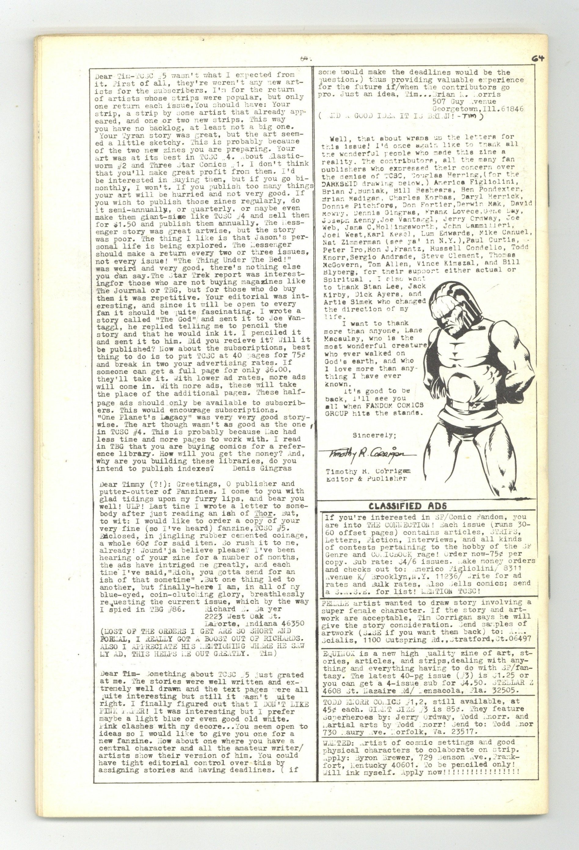 Published Dec 1975 by Tim Corrigan.$33.00Comics written and illustrated by Tim Corrigan, whose art is highly influenced by Jack Kirby. 64 pages, B&W. Cover price $1.25.