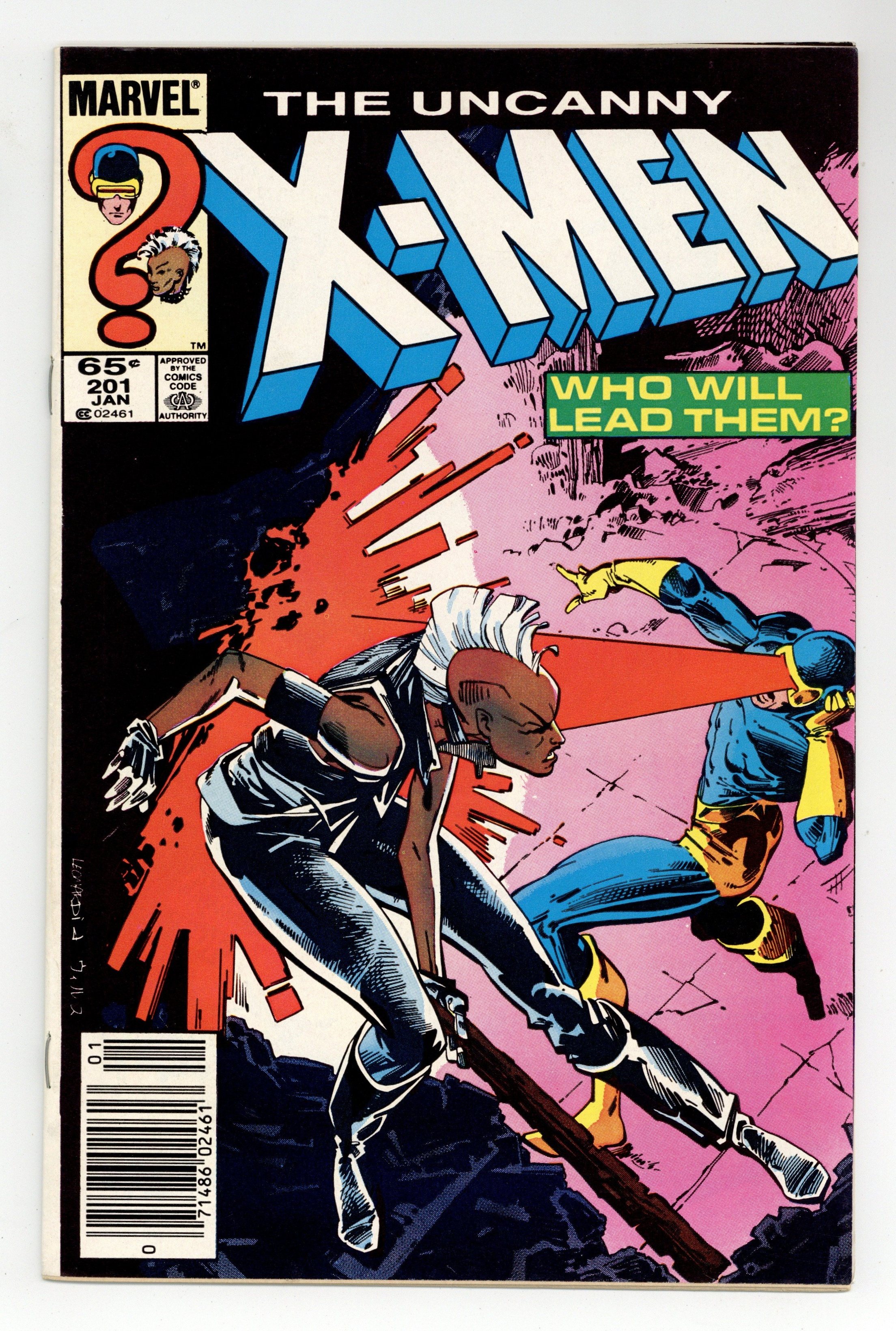 Newsstand Edition. "Duel!" Guest-starring the New Mutants. Cameos by the Watcher, Binary, and the Starjammers. Story by Chris Claremont. Art by Rick Leonardi and Whilce Portacio. Professor Xavier is gone. Taken by his beloved Lilandra, the Shi'ar Majestrix, to the far side of the galaxy to save his life. Magneto, the X-Men's one time deadliest adversary, has been left in charge of rearing the New Mutants. Thus, begins a new era for the Children of the Atom. Now they just need to decide on a leader. Cyclops duels a powerless Storm in the Danger Room for the right to lead the X-Men. Plus, Scott and Madelyne's son is born. NOTE: 1st appearance of Nathan Summers, the baby that will grow up to become the mutant freedom fighter known as Cable. 36 pgs. Cover price $0.65.