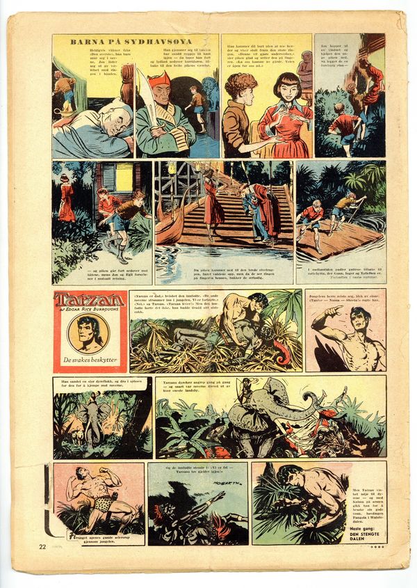 Norwegian weekly family magazine published in Oslo, Norway with articles on food, fashion, and world events. Also includes a two-page color comic-strip section. 10.5" x 14.75", 28 pages, PC/PB&W. Note: All text in Norwegian.