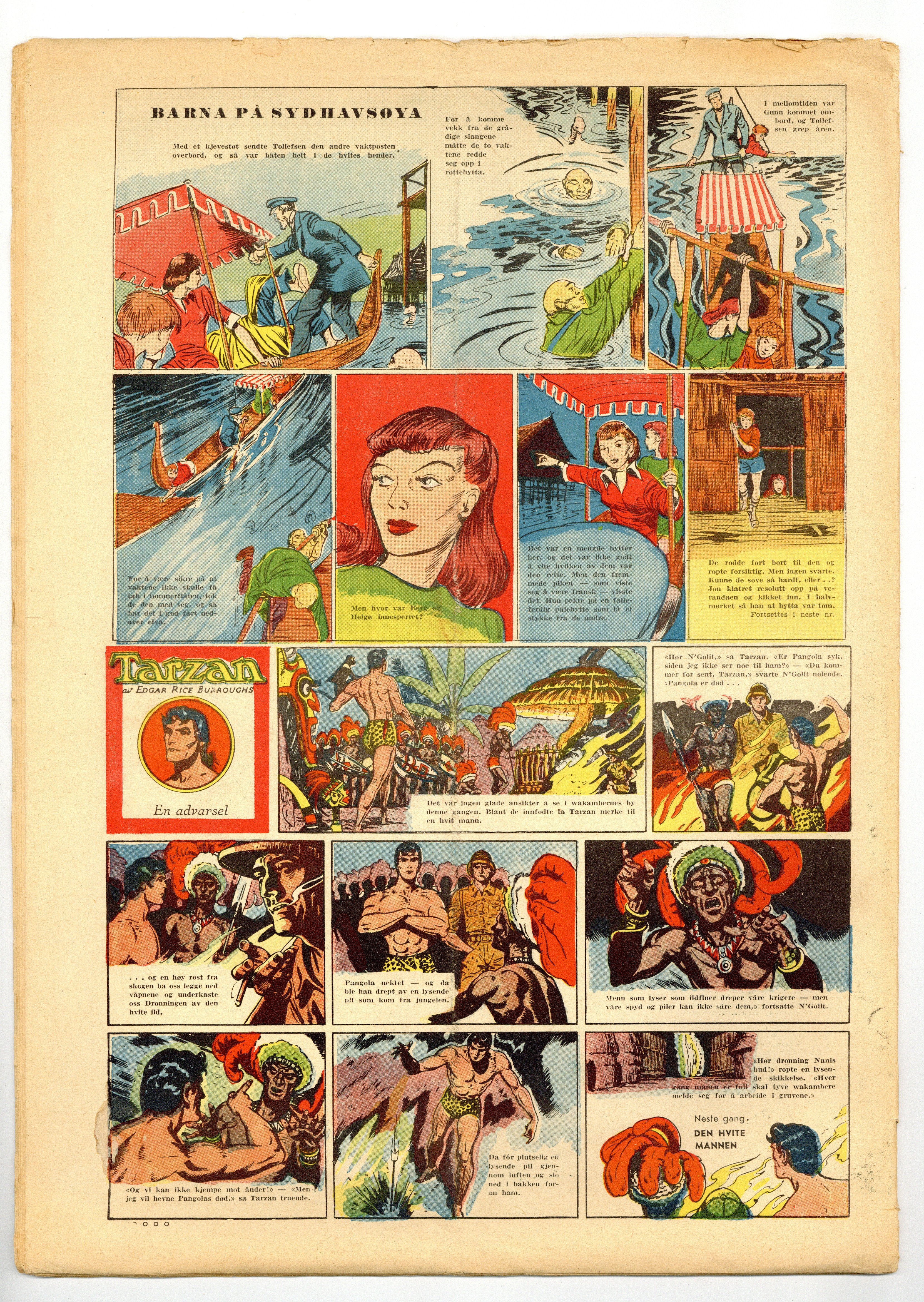 Norwegian weekly family magazine published in Oslo, Norway with articles on food, fashion, and world events. Also includes a two-page color comic-strip section. 10.5" x 14.75", 28 pages, PC/PB&W. Note: All text in Norwegian.