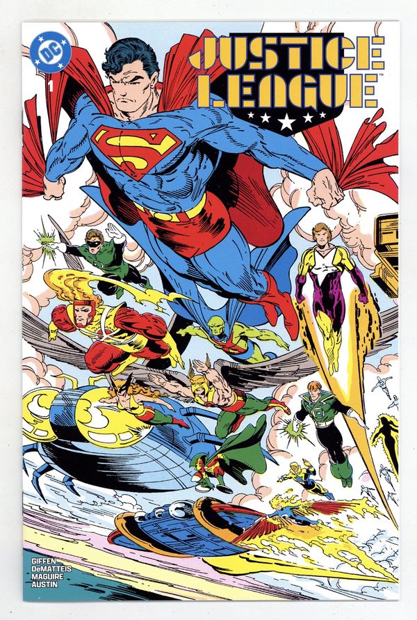 Whatnot New York Comic Con Exclusive Cover by Todd McFarlane and P. Craig Russell - Limited to 1500 copies. Reprints Justice League America (1987) #1. When terrorists take the U.N. General Assembly hostage, Doctor Light (Kimiyo Hoshi) calls on the newly formed Justice League for help in "Born Again". Plot and breakdowns by Keith Giffen, script by Giffen and J.M. DeMatteis, pencils by Kevin Maguire, inks by Terry Austin. Batman, Guy Gardner, Black Canary, Mr. Miracle, Oberon, Captain Marvel, Martian Manhunter, Blue Beetle, Dr. Fate, Maxwell Lord. 36 pages, full color.