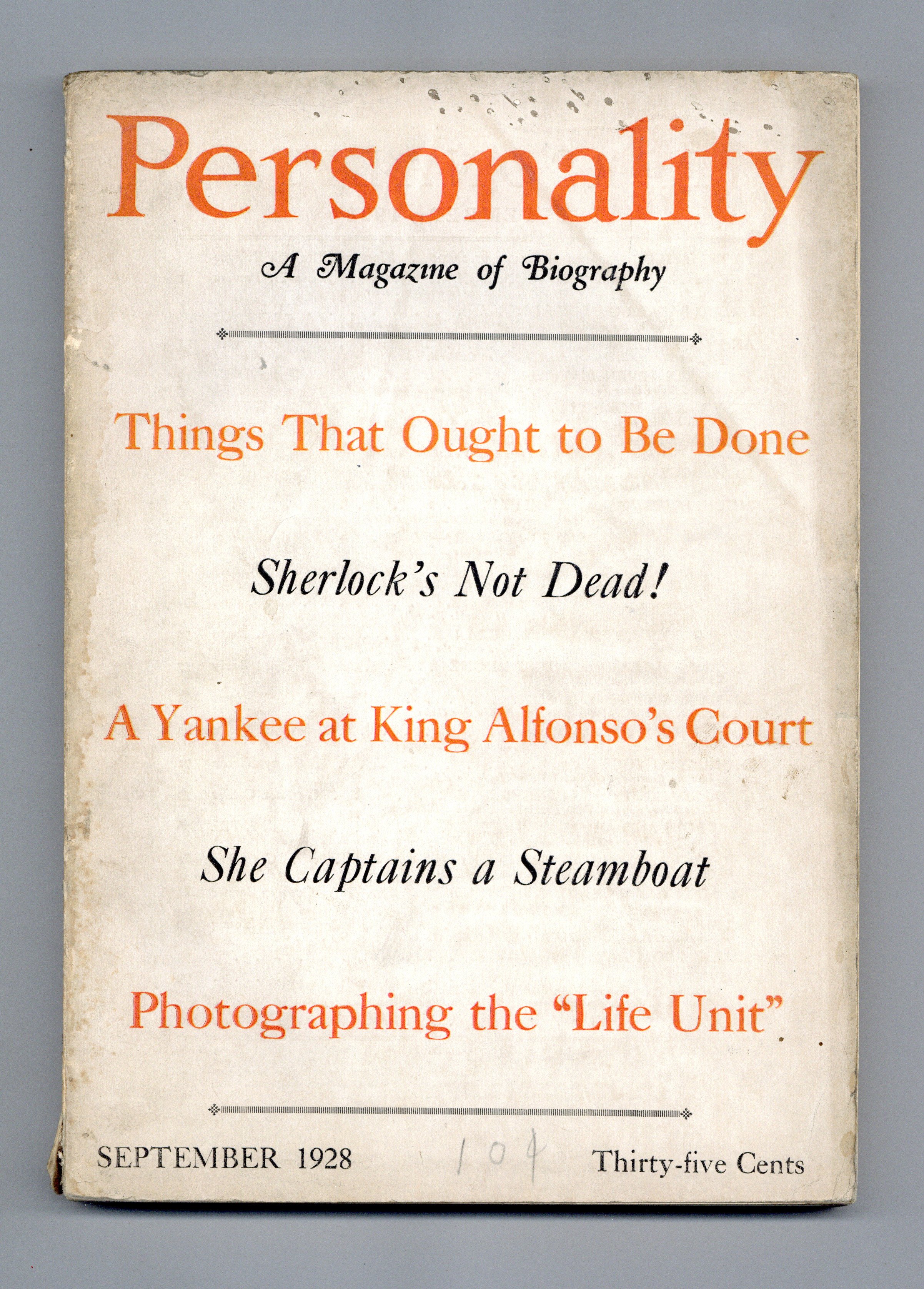 Short lived biography magazine. 7" x 10", 104 pages, B&W with full color frontispiece. Cover price $0.35.