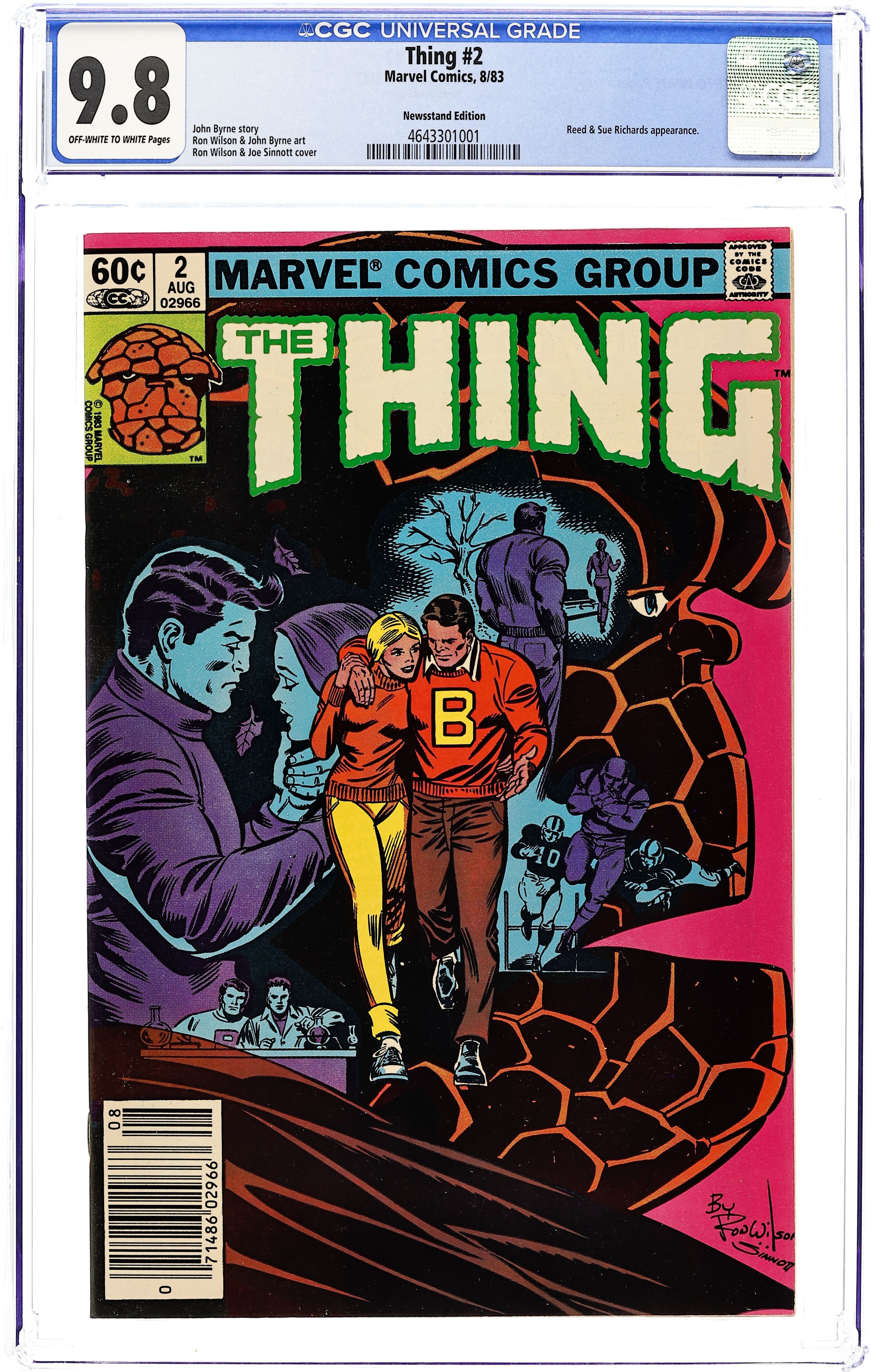 Newsstand Edition. "For Beauty Passed Away!" Guest-starring Reed Richards (Mister Fantastic). Story by John Byrne. Art by Ron Wilson and John Byrne. NOTE: This story picks up after the events of Fantastic Four (1961-1996 1st Series) #256 and Avengers (1963-1996 1st Series) #233. Ben pays a visit to the injured Alicia Masters and reminisces about the one that got away. Plus, Reed makes a decision that could change the FF's lives for ever. Story continues in Fantastic Four (1961-1996 1st Series) #257. 32 pages, FC Cover price $0.60.