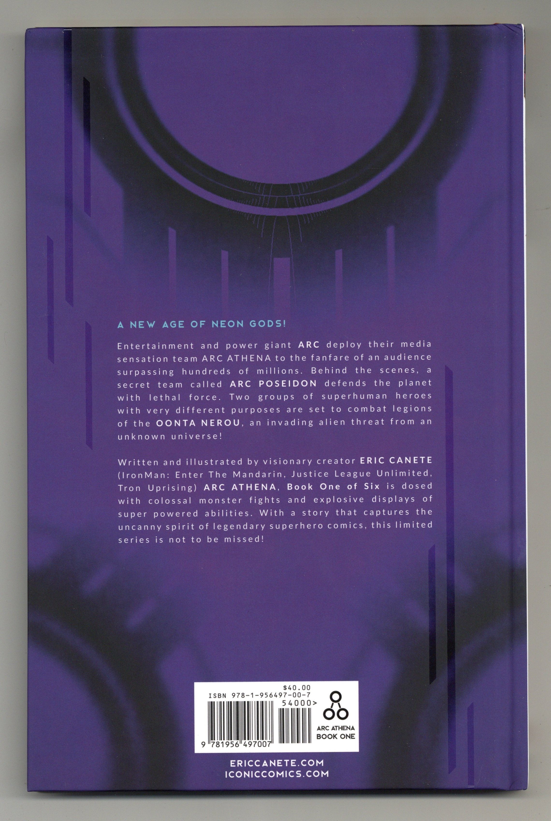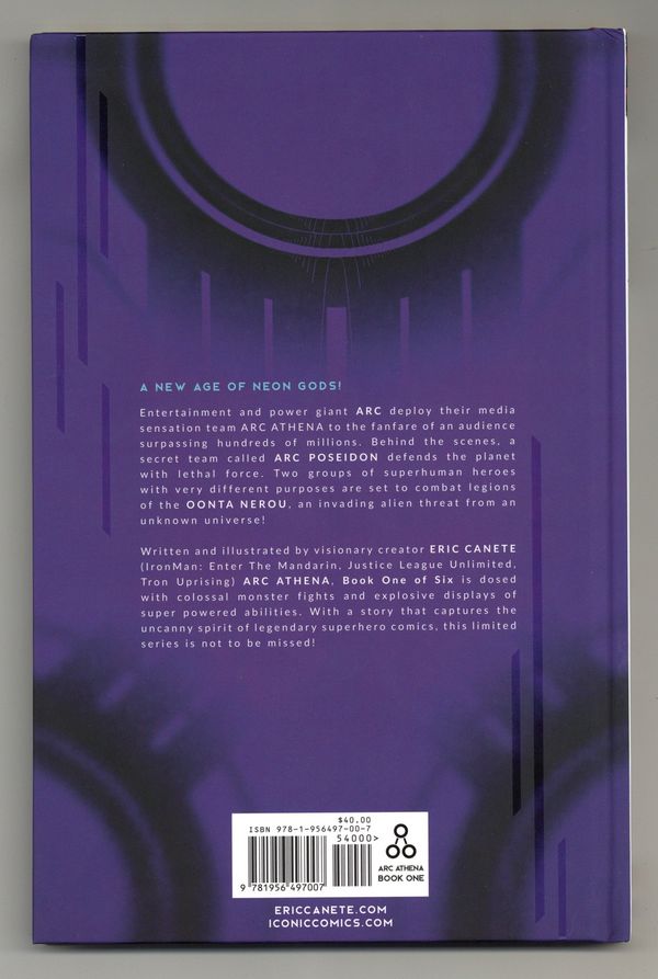 1st printing. Book One - Neon Gods - Written and illustrated by Eric Canete. Hardcover, 64 pages, full color. Cover price $40.00.