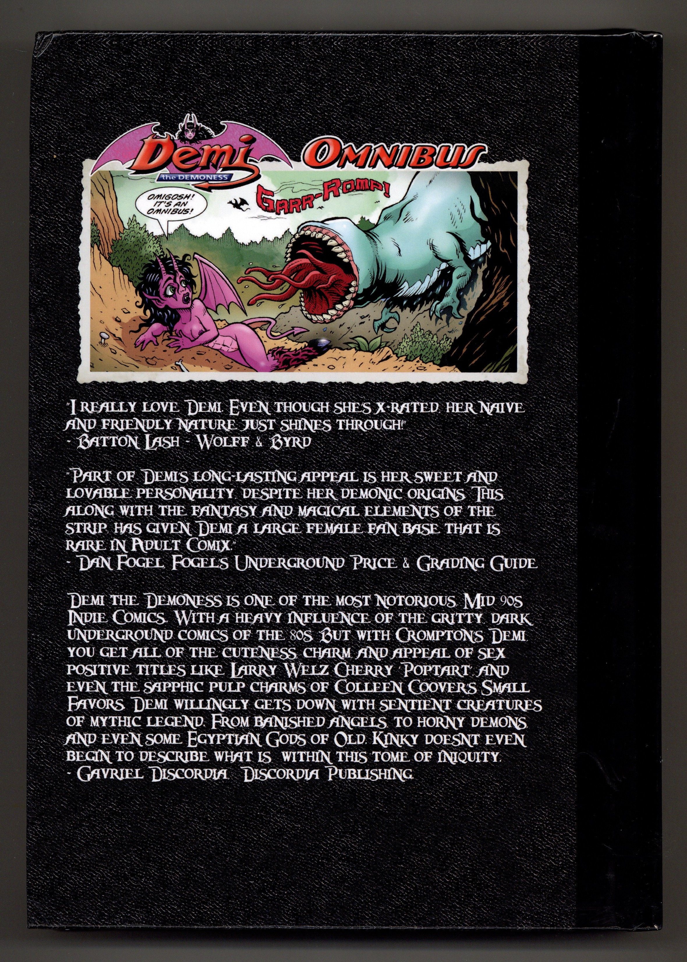 Limited Edition Hardcover - 666 numbered copies. Written and illustrated by Steven S. Crompton. Collects Demi issues 1-7 and Demi Hardcover issues 1-4, plus the never published 11th final issue. Hardcover, 7-1/4" x 10-1/4", 340 pages, B&W, Adults Only.
