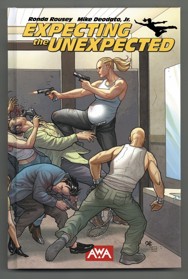 Oversized Hardcover Edition. Frank Cho Variant Cover. Written by Ronda Rousey. Art by Mike Deodato. Cover by Razzah. Back Cover by Mike Deodato. Her codename: "Mom." With a fake baby bump filled with guns, she's built a reputation as one of the deadliest hit-women on the planet. But on the verge of her big break in the criminal underworld, Mom makes a fateful decision: sleeping with a potential target (who just so happens to be a top-ranked assassin himself). What follows is a wild mashup of action, adventure, comedy, and romance as a newly pregnant Mom with a bounty on her head fights off wave-after-wave of assassins, falls in love with her baby daddy, and decides how to face her personal and professional predicament. Hardcover, 168 pages, full color. Mature Readers Cover price $75.00.