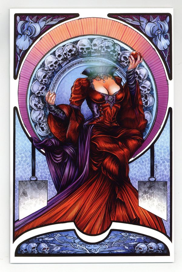 "Queen Ex Mortis Nouveau" Edition Virgin Cover by Monte Michael Moore - Limited to 50 copies. Story by Tom Hutchison. Art by Ryan Kincaid. 225 years ago, Marie Antoinette was wrongly executed by guillotine. But what happened next has never been reveled...until now! 36 pages, full color.