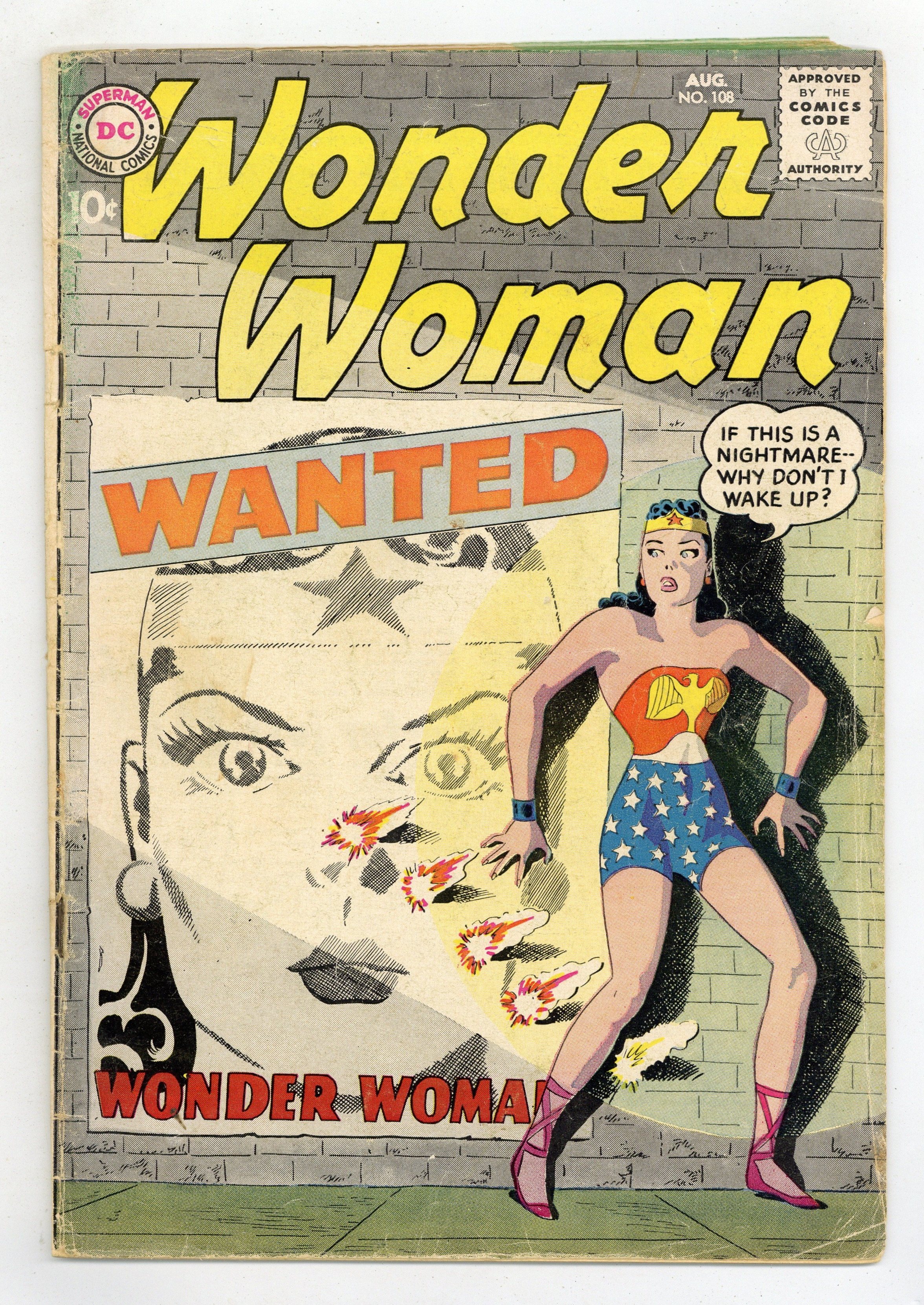 Cover pencils by Ross Andru, inks by Mike Esposito. "Wanted - Wonder Woman," script by Robert Kanigher, pencils by Ross Andru, inks by Mike Esposito; Space invaders try to hypnotize Wonder Woman into marrying Steve Trevor. Jerry The Jitterbug humor page by Henry Boltinoff. "The Stamps of Doom," script by Bill Finger, pencils by Ross Andru, inks by Mike Esposito; An evil scientist tries to use the first day issue of Wonder Woman stamps to prove how powerful his new explosive is. 36 pages, Full Color. Cover price $0.10.