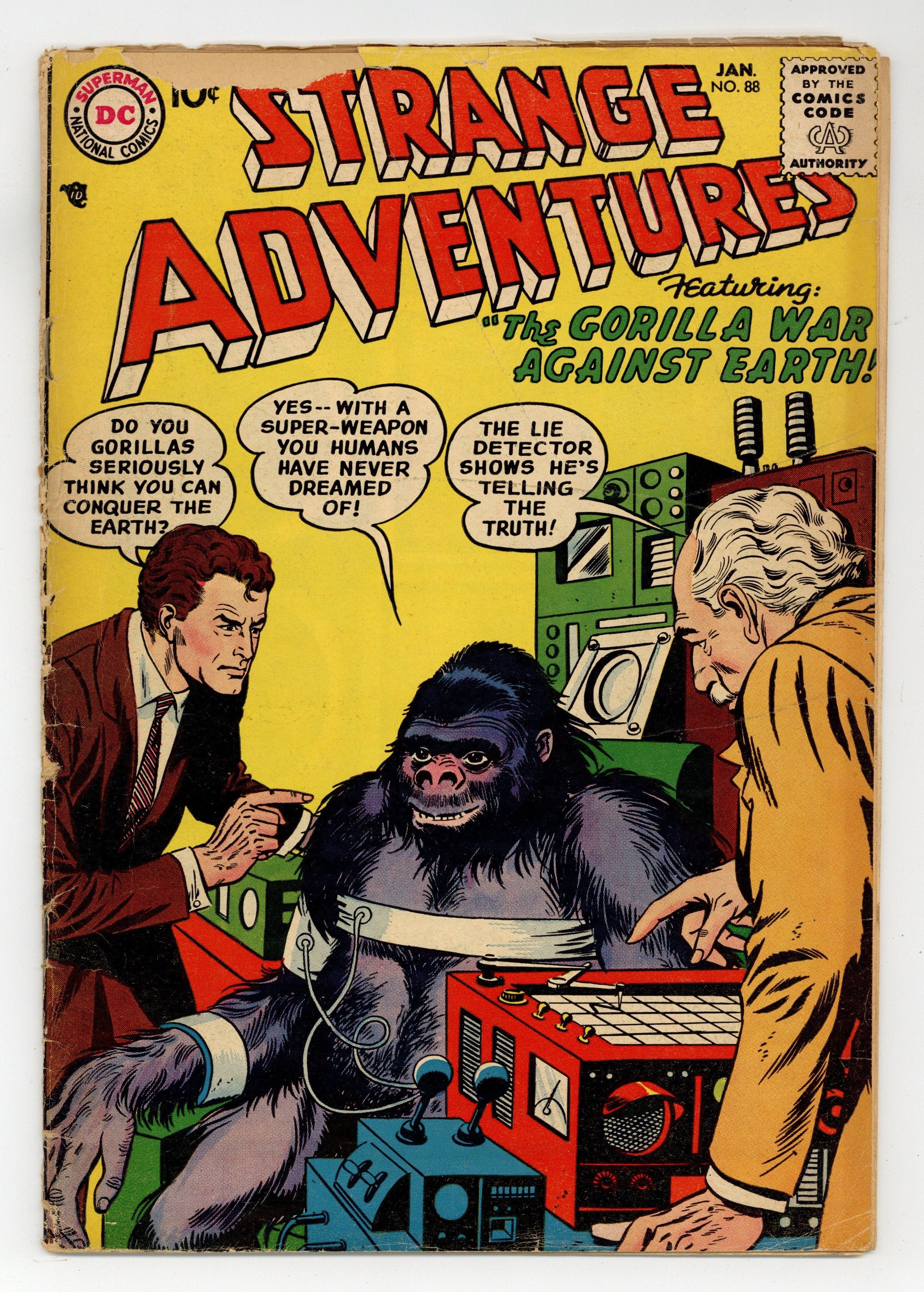 "The Gorilla War Against Earth!" (pencils by Carmine Infantino); "The Warning Out of Time!"; "Bodyguard From Space!" (pencils by Gil Kane); and "The Secret of the Sleeping Spaceman!" Kane cover pencils. 36 Pages, Full Color. Cover price $0.10.