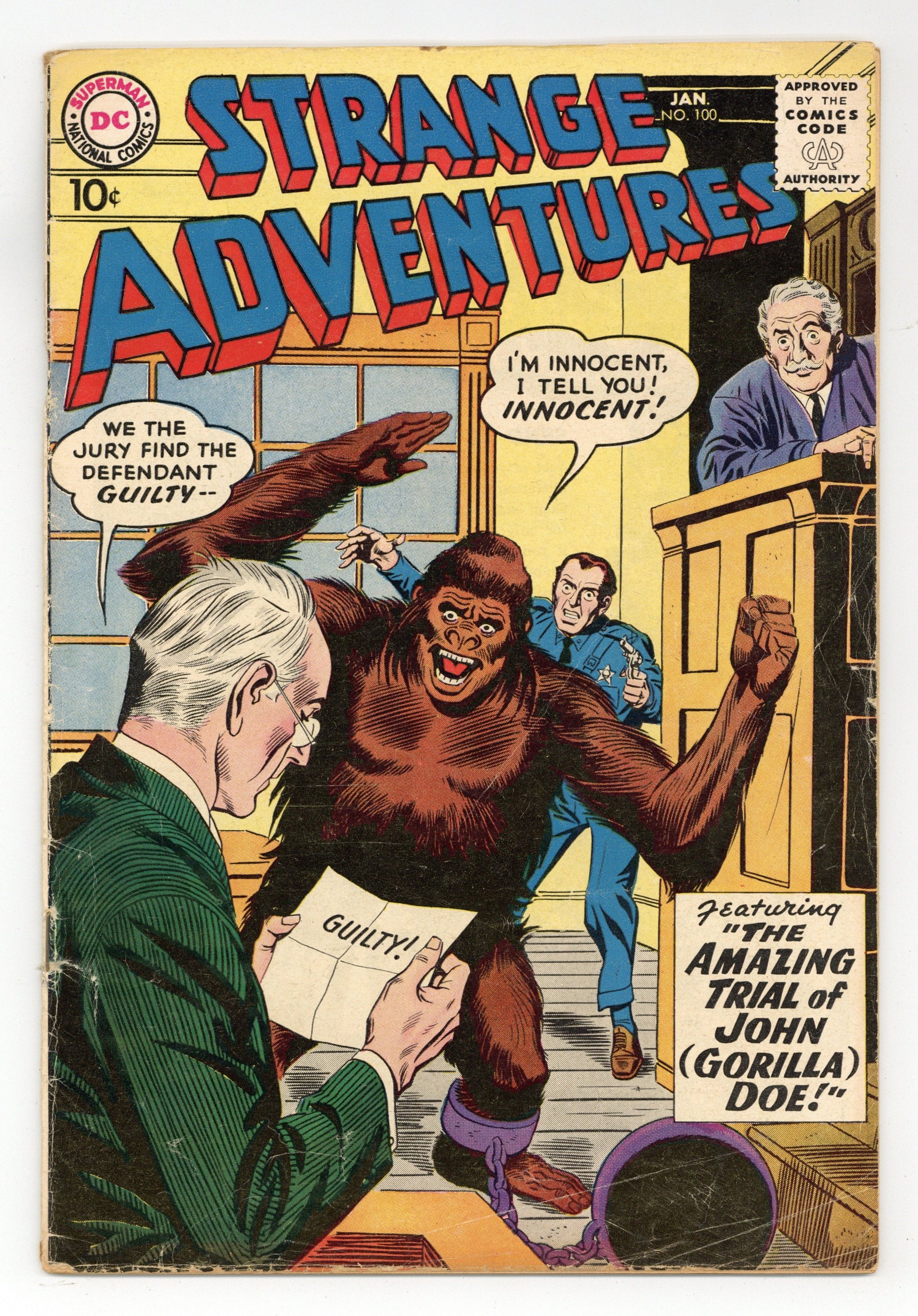 "The Amazing Trial of John (Gorilla) Doe!" (pencils by Carmine Infantino); "The Man Who Broke the Light-Speed Barrier!" (pencils by Gil Kane); and "The Lost Language of Earth!" (pencils by Infantino). Kane cover pencils. 36 Pages, Full Color. Cover price $0.10.