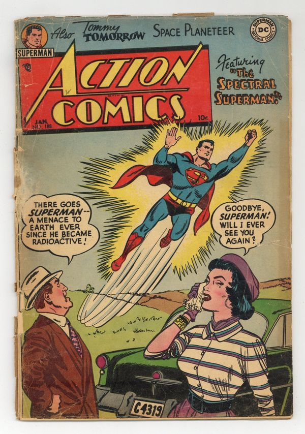 Cover art by Win Mortimer. Home, Sweet Home! starring Binky, script by Jack Schiff, art by Bob Oksner. The Spectral Superman, pencils by Wayne Boring, inks by Stan Kaye. Sinbad the Killer starring Congo Bill, art by Ed Smalle. The Rebus of Space starring Tommy Tomorrow, art by Jim Mooney. The Reformed Owlhoot Club starring Vigilante, script by Dick Wood, art by Howard Sherman. 44 Pages, Full Color. $.10 Cover price $0.10.