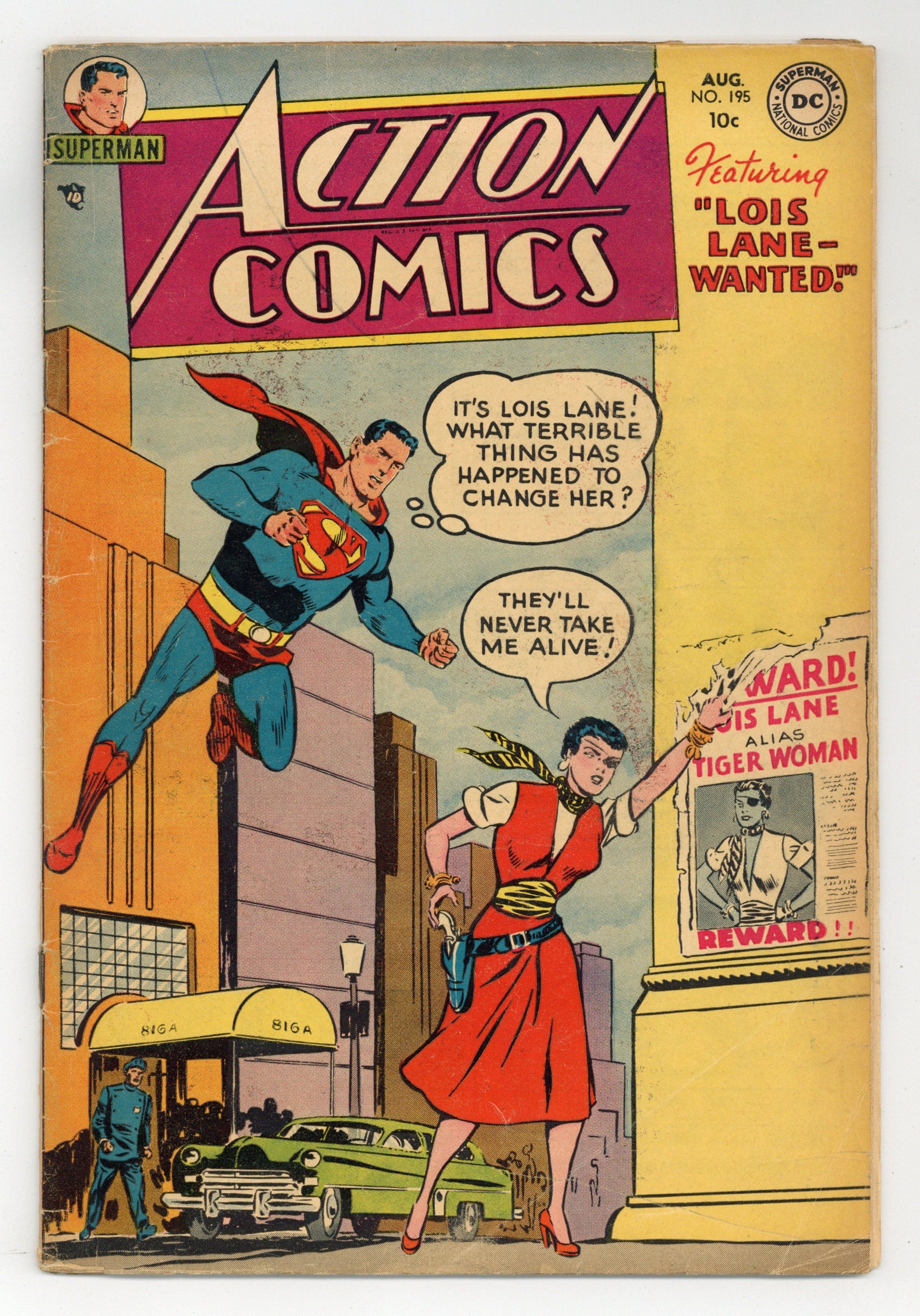 Cover art by Wayne Boring and Stan Kaye. Lois Lane – Wanted starring Superman, script by William Woolfolk, pencils by Wayne Boring, inks by Stan Kaye. The Safari of Young Janu starring Congo Bill, art by Ed Smalle. The Time Vault World starring Tommy Tomorrow, script by Otto Binder, art by Jim Mooney. The Counterfeit Vigilante, art by Howard Sherman. 44 Pages, Full Color. $.10 Cover price $0.10.