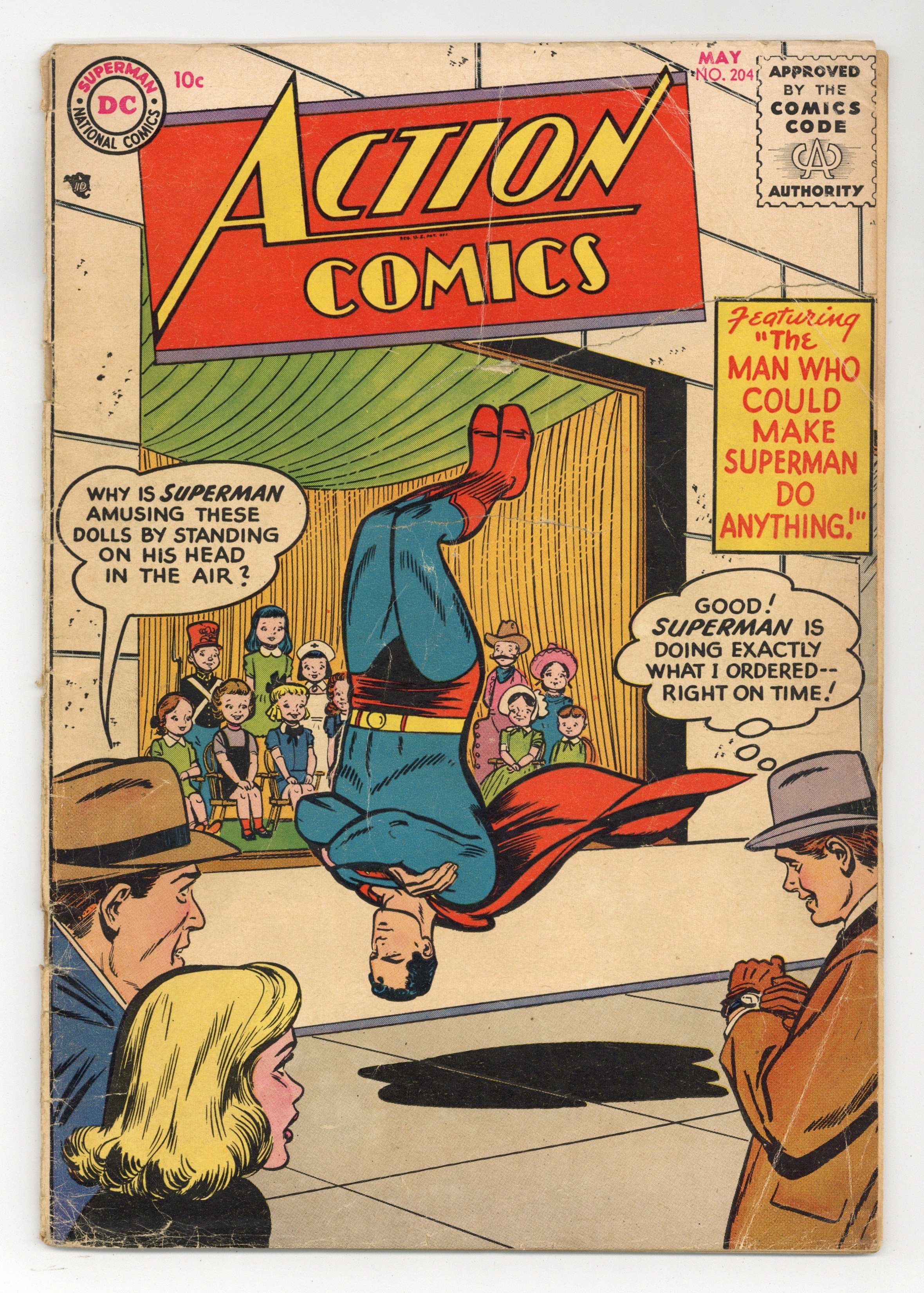 Cover by Win Mortimer. "The Man Who Could Make Superman Do Anything," script by Jerry Coleman, pencils by Wayne Boring, inks by Stan Kaye; Metropolis is baffled when Superman seems to have to obey the every order of a man called Sam Spulby. One-page Babs story, art by Bob Oksner. Planet Quiz activity page by Henry Boltinoff. "Boy Planeteer" starring Tommy Tomorrow, script by Otto Binder, art by Jim Mooney. One-page Shorty story by Henry Boltinoff. "Dynamite Danger" text story by Jack Miller (as Jim Mason), art by Raymond Perry. "Village of 1,000 Idols" starring Congo Bill, art by Ed Smalle. One-page Bebe story by Henry Boltinoff. 36 Pages, Full Color. $.10 Cover price $0.10.