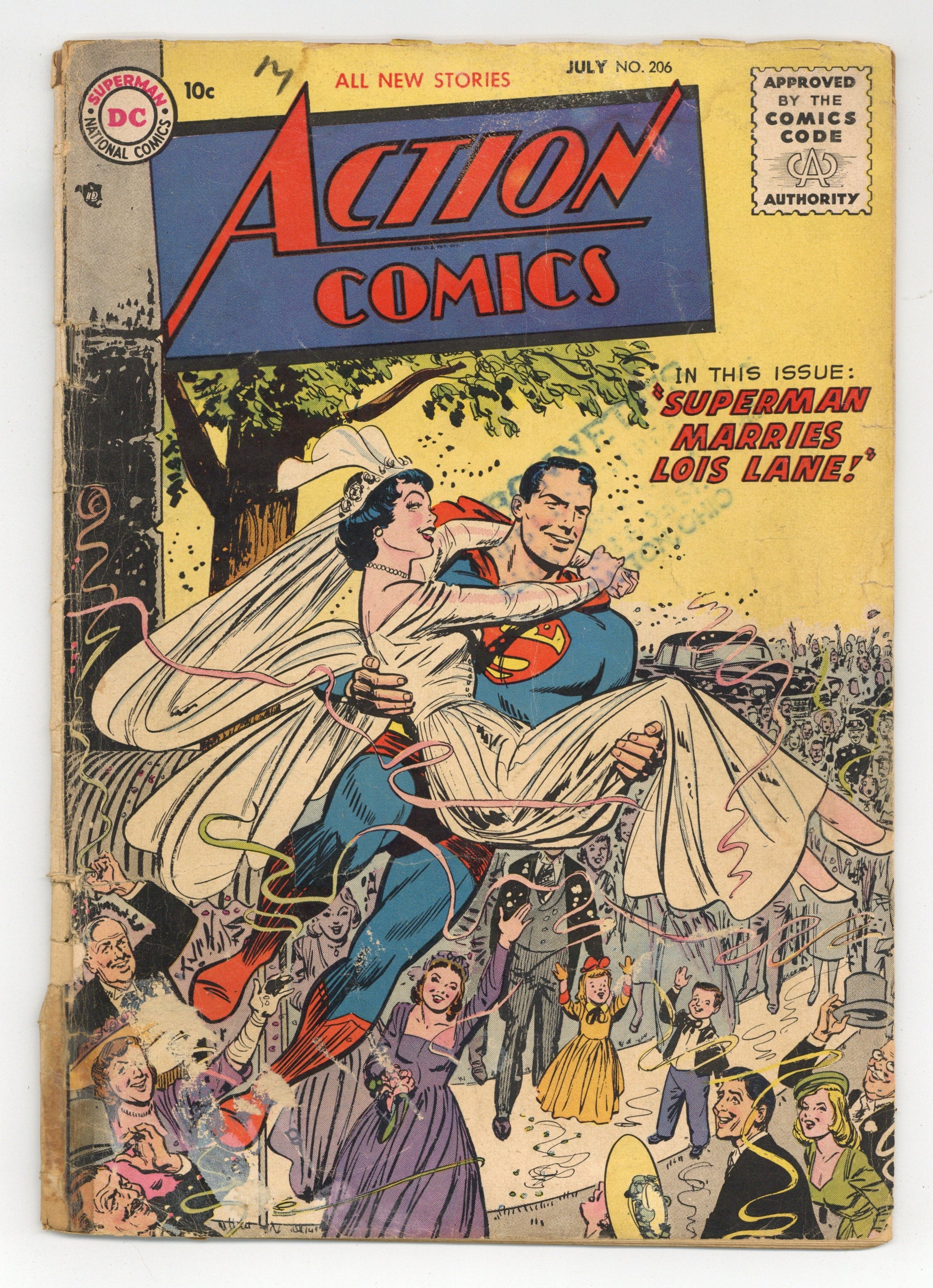 Cover by Win Mortimer. "Superman Marries Lois Lane," pencils by Wayne Boring, inks by Stan Kaye; Lois Lane has a dream of her potential married life with Superman. One-page Shorty story by Henry Boltinoff. "Destination Future" starring Tommy Tomorrow, script by Otto Binder, art by Jim Mooney. Two-page On the Set story by Henry Boltinoff. "The Heat's on in Yuma" text story by Ronald M. Deutsch, art by Raymond Perry. "The Mystery of the Jungle Monuments" starring Congo Bill, art by Ed Smalle. 36 Pages, Full Color. $.10 Cover price $0.10.
