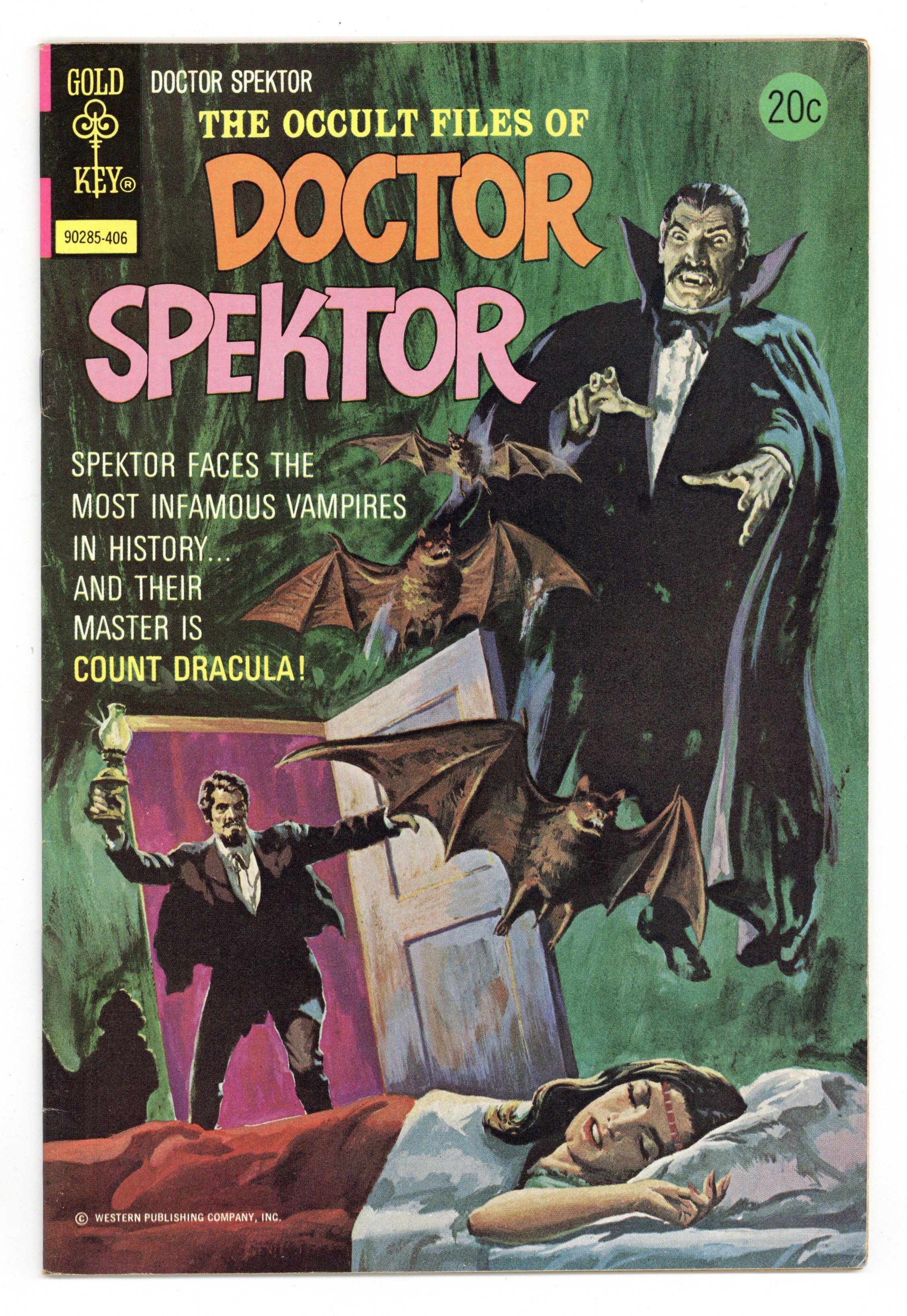 $18.00Dr. Spektor in "Dracula's Vampire Legion" with Baron Tibor appearance and "Beware...The Beasts!" Jesse Santos art. Painted front cover. # on cover 90285-406 June. #8 6/74 20c Cover price $0.20.