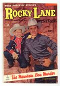 Stories and art by Ralph Carlson and Howard Boughner. Movie cowboy Allan "Rocky" Lane roams the West with a yen for justice. Rocky tries to tame a Western town when a cattle drive comes through, making the place as wild as a future spring break, only with horses and guns. A beautiful woman causes strife in a small town, but that's as nothing to a woman scorned. Vengeful outlaw Hank plots to get even with Rocky in the town of Wheel Rim, where guns are banned. Peaceful Pete; The Green-Eyed Monster; Sagebrush; The Town Tamer; Gopherface; Bronko Betsy; Dee Dickens: The Mighty Masseur; The Mountain Lion Murder. 32 pages, Full Color. Cover price $0.10.