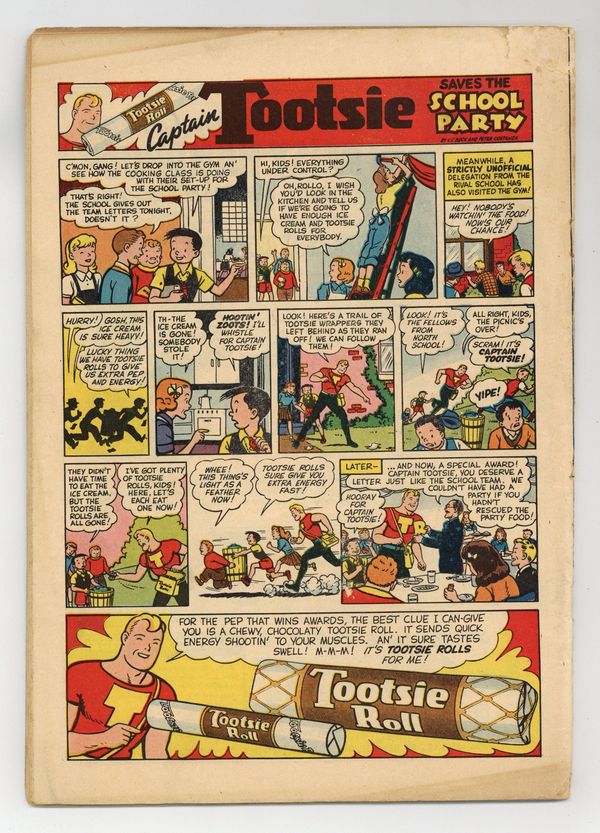Cover pencils by Wayne Boring, inks by Stan Kaye. The Toyman's Castle starring Superman and The Toyman, script by Don Cameron, pencils by Ira Yarbrough. Susie Reforms starring Superman, Susie Tompkins, Tambu, Kadir, and Crawley, Lois Lane, and Perry White, script by Don Cameron, pencils by Ira Yarbrough. Tide Squeeze text story by Don Carter. Superman's Unlucky Day starring Perry White and Lois Lane, script by Jerry Siegel, pencils by Ira Yarbrough, inks by George Roussos. Tootsie Roll back cover ad, "Captain Tootsie Saves the School Party" by C.C. Beck and Pete Costanza. 52 Pages, Full Color. Cover price $0.10.