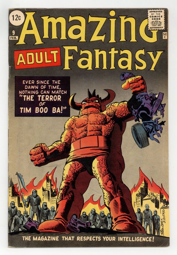 Cover art by Steve Ditko. The Terror of Tim Boo Ba; Alien warlord Tim Boo Ba is master of all he surveys but is wiped out in a torrential flood when an Earth boy drips water on the small scale model that is Tim Boo Ba's home planet. The Man Who Captured Death!; An old man builds a machine to freeze Death in his tracks since he is unwilling to go when he has so much more left to accomplish; With Death removed from the picture, the Earth becomes a shambles. I Come from the Black Void. The Spirit of Swami River; A swami crook steals money from gullible widows with his fake act until he promises to deliver money to a dead husband's spirit and the swami is surprised to find himself disappearing when the real spirit holds him to his word. The Genie Lives. All scripts by Stan Lee, all art by Steve Ditko. 36 pgs. $0.10. Cover price $0.12.
