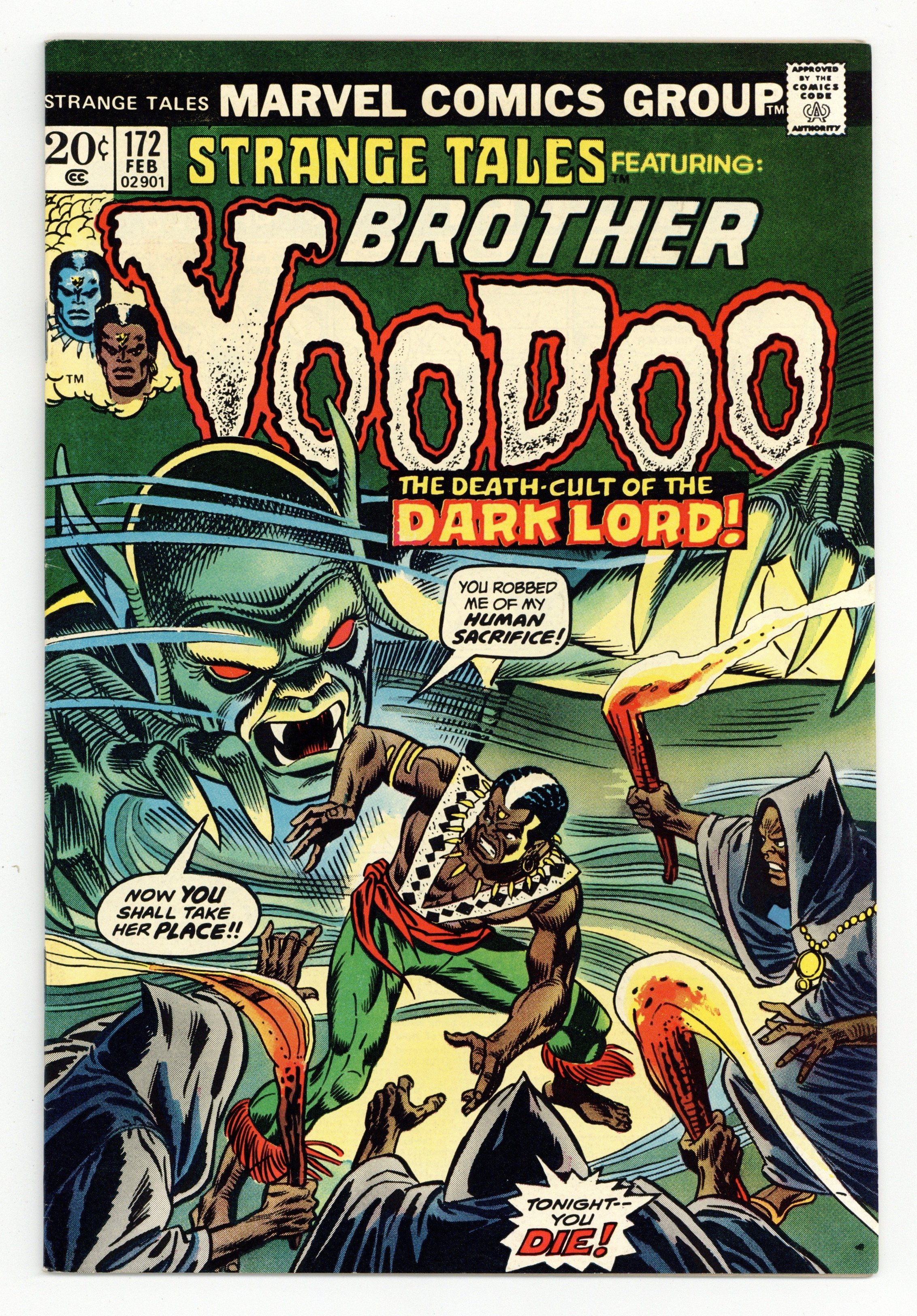 Ends Dec 15 9:37 PM CST Bid History 8 bids Current Bid $59 Your Secret Max Bid If you'd like to bid, please log in or register. Cover pencils by Gil Kane, inks by Frank Giacoia. "Fiend in the Fog," script by Len Wein, pencils by Gene Colan, inks by Dick Giordano; Outside his home in New Orleans, Brother Voodoo spots a young girl being swept away in the Mississippi River; Diving into the water, Voodoo manages to save the girl and bring her back to his home; There he learns that she is Loralee Tate, daughter of Samuel Tate the local chief of police; She tells Brother Voodoo that she has been stalked by a group called the Cult of the Darklord. The reprint of an old weird story, "Voodoo," script by Carl Wessler, art by Gene Colan. 36 pgs., full color. Cover price $0.20.