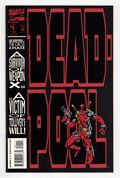 $11.00Direct Edition. The Circle Chase Round 1: Ducks in a Row - Written by Fabian Nicieza. Art and Cover by Joe Madureira and Mark Farmer. Sporting an outrageous cover -- an embossed figure of Deadpool is positioned leaning against a full cover sized embossed logo. This series pits Deadpool against Juggernaut, Black Tom Cassidy, Nyko and a wicked new villain, Slayback! 32 pages, full color. Cover price $2.50.