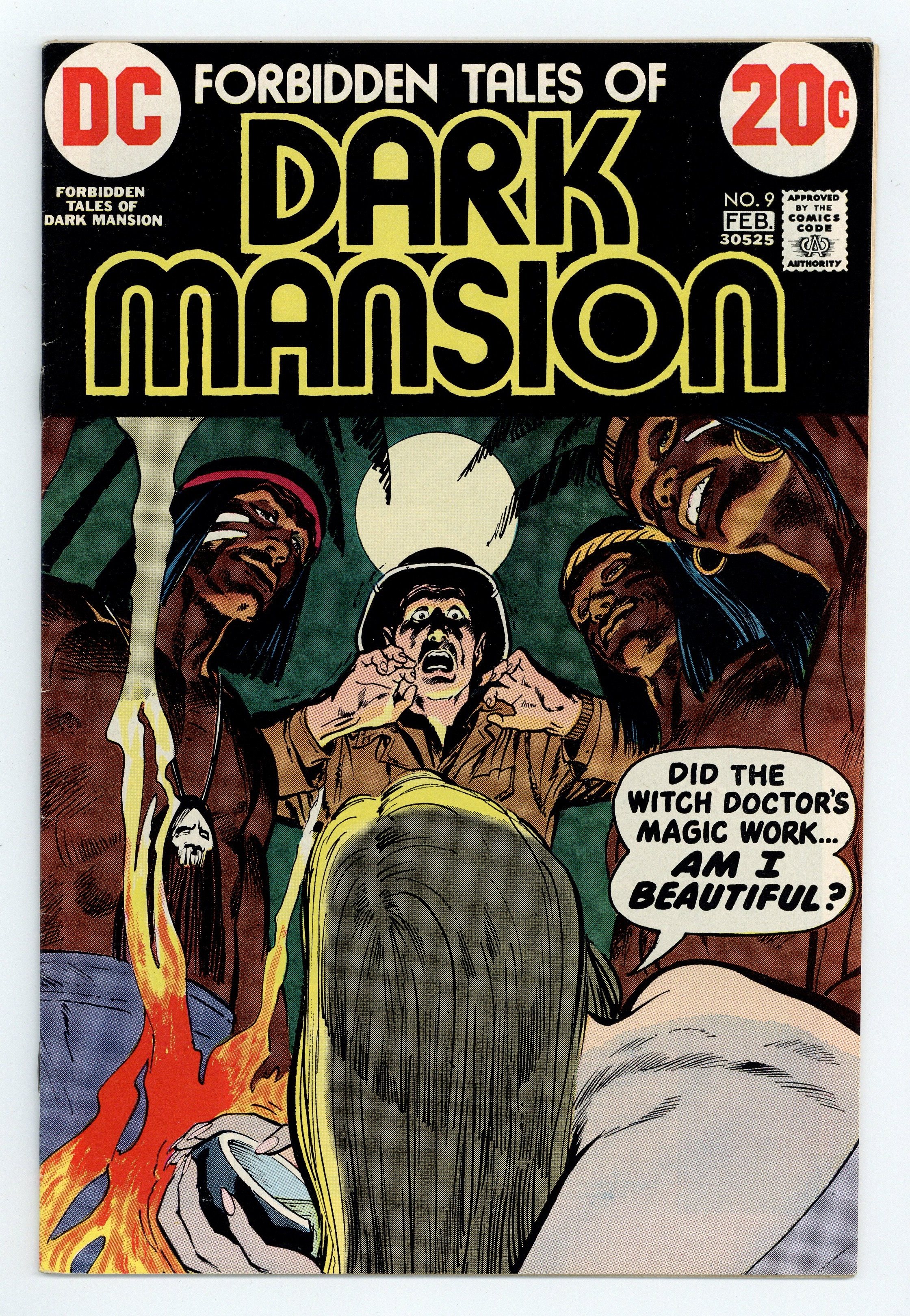 $25.00Neal Adams cover, Michael Kaluta splash page. Welcome to the world of the Dark Mansion, a world of the unknown, the suspenseful, and the strange. Anthology type comic featuring suspenseful and spooky stories. This issue features "Donovan's Demon," (Script by Jack Oleck & art by Jess Ramos) in which a man's obsession with magic and the occult leads him into danger, "Specter's Notebook," (Story & art credits: unknown) in which a volunteer fireman's writings in a little black book causes deaths, and "The Head of the House," (Script by Jack Oleck & art by Alfredo Alcala) in which a woman in an expedition in the Amazon will do anything to become beautiful. Cover price $0.20.