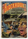 Cover by Reed Crandall. Stories by Paul Gustavson and unknown. Art by Paul Gustavson, Reed Crandall and unknown. Into the sea they fled...leaving cities paralyzed from their merciless attacks! Don't miss Blackhawk in "The Killer Shark" with art by Reed Crandall. Blackhawk is also featured in: "The Lost Express"; "The Flying Octopus"; and 1-page text story "Origin of the Blackhawks"! Plus: Chop Chop in an untitled back-up story by Paul Gustavson. And: 1-page text story "Naombi's Skull"! 36 Pages, Full Color. Cover price $0.10.