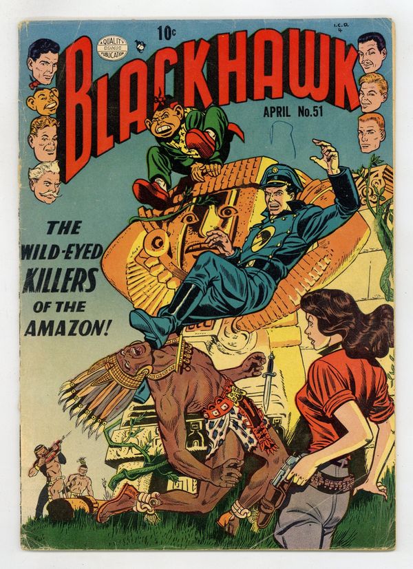 Cover by Reed Crandall. Stories by Paul Gustavson and unknown. Art by Paul Gustavson and Bill Ward. Featuring Blackhawk in: "The Root of Evil" with art by Bill Ward; "Drop of Destruction" with art by Ward; and "Whip of Montelon" with art by Ward. Plus: Chop Chop in an untitled back-up story by Paul Gustavson. And: 1-page text story "The Killer Who Wasn't There"! 36 Pages, Full Color. Cover price $0.10.