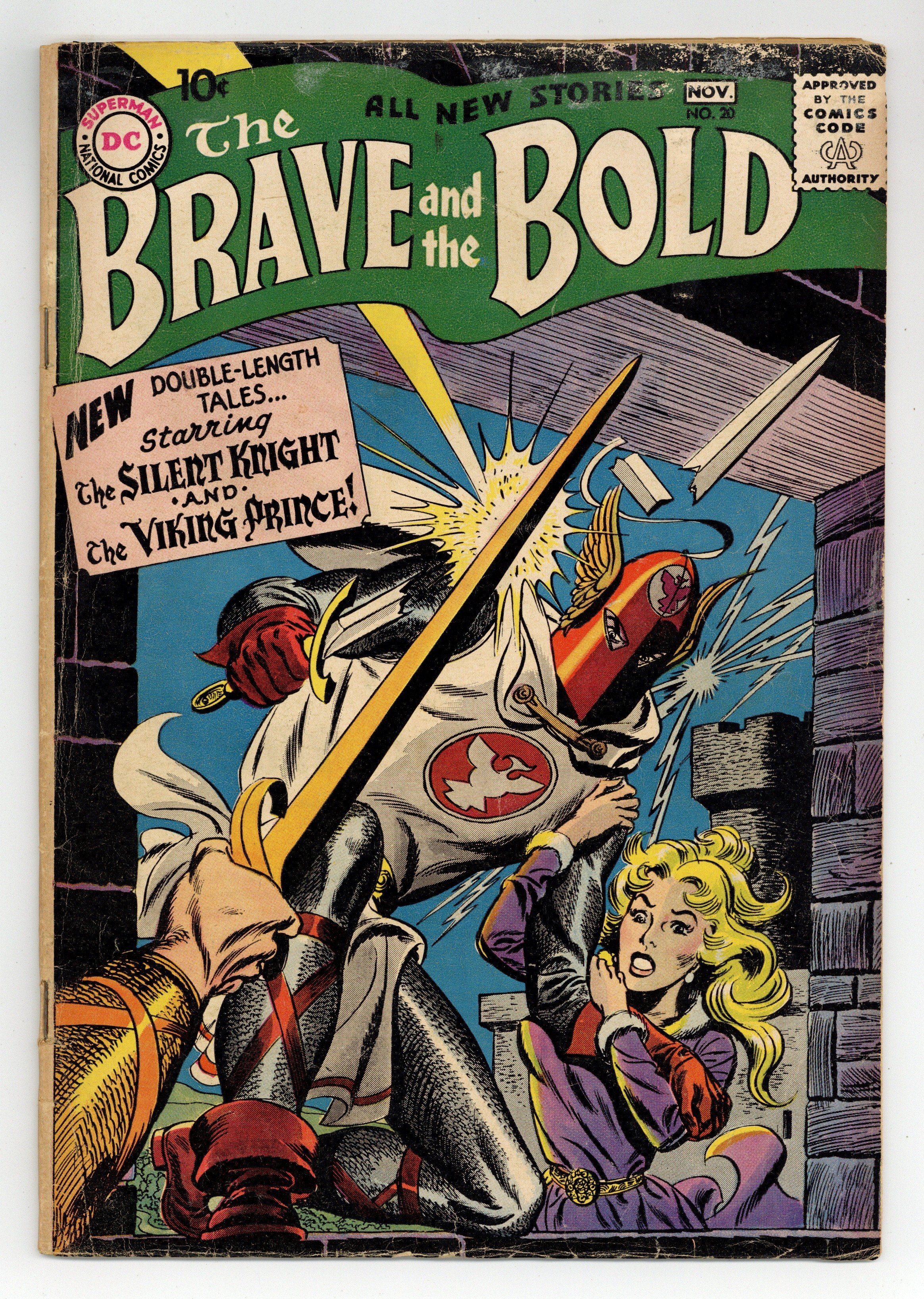 Cover by Irv Novick. "The Haunted Castle," script by Robert Kanigher, art by Irv Novick; As the legend goes, every one-hundred years the sorceror Thando's castle appears, and he will be free to conquer the land unless a brave knight defeats him; Celia is taken by Thando, making his appearance once again; Only the Silent Knight can defeat him and rescue his lady love! Do You Know the Legend of Superman? ad. The Student Warrior article by Jack Miller, art by Raymond Perry. "The Secret of Odin's Cup," script by Bob Haney, art by Joe Kubert; Jon and the mute bard take shelter in a cave during a storm; But this is no ordinary cave, as it leads to the vast lair of Wotan, underworld Viking; It is also where the fabled cup of Odin, with which one drink grants invincibility against all odds, has been hidden by its guardian, a fair princess maiden. 36 Pages, Full Color. Cover price $0.10.