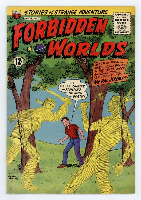 Cover by Ogden Whitney. Edited by Richard E. Hughes. Stories by Richard Hughes, credited as Zev Zimmer and Kurato Osaki. Art by Hy Eisman, Ogden Whitney and Chic Stone. An anthology series featuring tales of fantasy and science fiction adventure from legendary early independent comics publisher ACG. A lonely boy encounters a ghostly pirate band and is befriended by one of them; The Mississippi Queen riverboat makes its final journey into the unknown; Jupiter, king of the gods, gets fed up with the challenges of godhood and decides to live as a mortal on Earth. My Pal Jeremy!; The Riverboat That Vanished; The Old Familiar Faces!; By Jupiter! 32 pages, Full Color. Cover price $0.12.