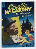 Indicia title is CHARLIE McCARTHY in the HAUNTED HIDE-OUT, No. 196. Photo cover of Charlie McCarthy. Charlie McCarthy Trivia. The Haunted Hide-Out, art by Harvey Eisenberg; Charlie and Mortimer go into the laundry business, with disastrous results; To drum up business, Mortimer decides to go to a haunted house to see if the ghosts need their sheets washed and Charlie follows; The haunted house happens to be the hide-out of a couple of bank robbers. Charlie McCarthy and His Pet Ostrich, art by Harvey Eisenberg; When Charlie's pet ostrich causes problems, Charlie tries to sell her to Mortimer. Back cover photo of Edgar Bergen with Charlie McCarthy and Mortimer Snerd. 36 pages, full color. Cover price $0.10.