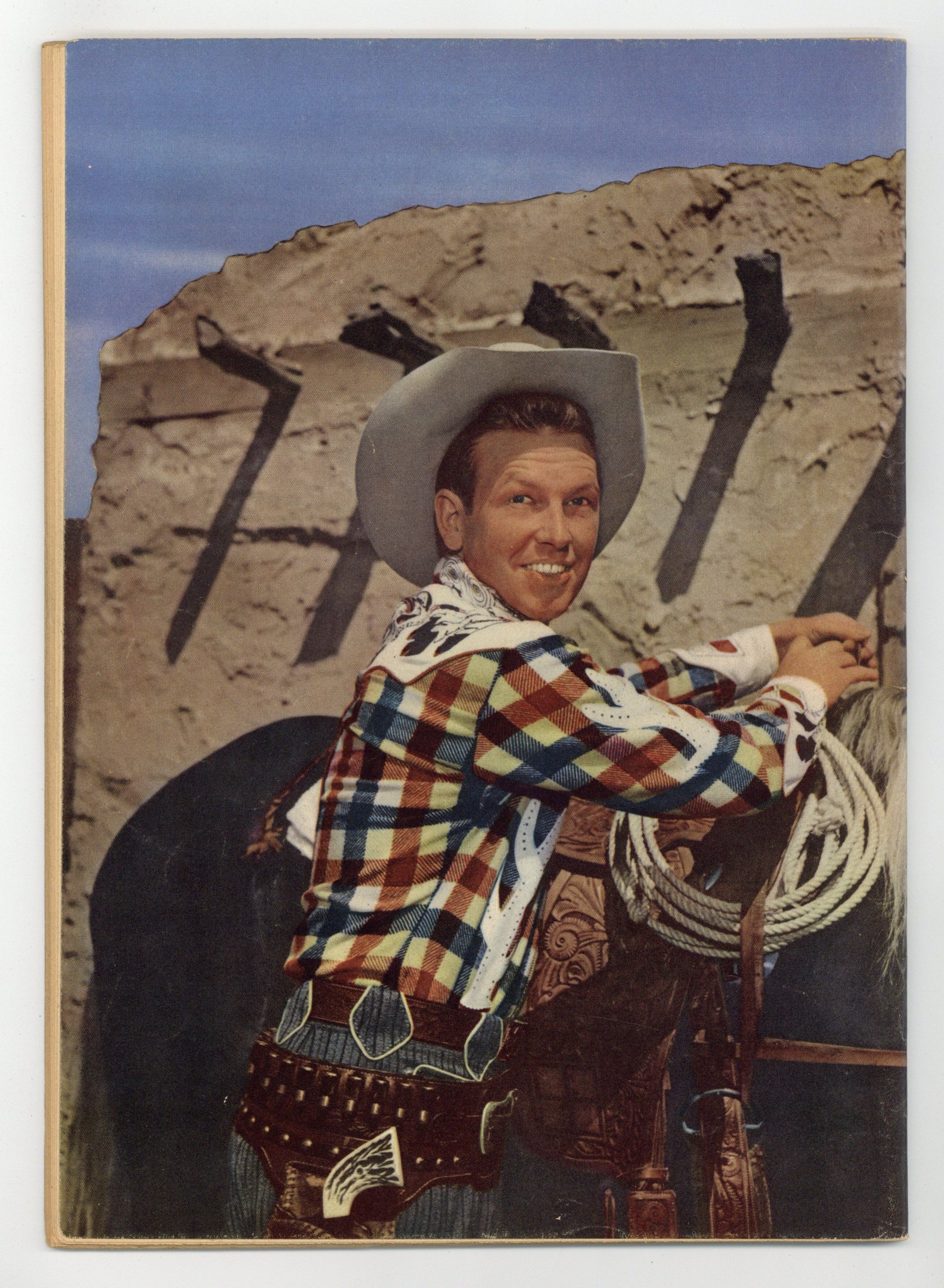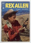 Rex Allen #1. Indicia title is "REX ALLEN, No. 316." Rex Allen photo cover. Posed photo of Rex playing a guitar inside cover photo. The Legacy, art by Jesse Marsh; When Rex goes to Oklahoma to investigate a claim on his uncle's estate, he is framed in the killing of a sheriff. Ghost Town Gun Runners, art by Jesse Marsh; Masked riders are attacking supply wagons to Mule Gulch to force the residents to leave. Rex riding his horse Koko inside back cover photo. Rex prepares to mount Koko, with adobe building in background back cover photo. 52 pages, full color. Cover price $0.10.
