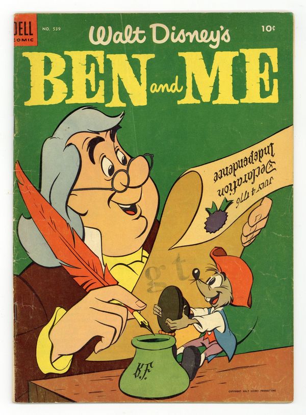 Walt Disney's "Ben and Me" - Written by Del Connell. Declaration of Independence cover and interior art by Al Hubbard. Also features three text articles on Benjamin Franklin. 36 pages, full color. Cover price $0.10.
