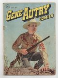 Photo cover of Gene Autry. Stories and art by Jesse Marsh and others. Singing cowboy Gene Autry was a multimedia star from the 1930s-1950s, in music, movies, radio, and television, as well as comic books. This issue features art by Tarzan artist Jesse Marsh. A bandit manages to be in three places at once. But Gene discovers the truth about the mysterious outlaw called El Rojo Hombre. Gene assumes the identity of the Dallas Kid to battle outlaw arsonists. Gene Autry and the Scarlet Three; The Wrong Horse; Gene Autry and the Dallas Kid. 48 pages, Full Color. Cover price $0.10.