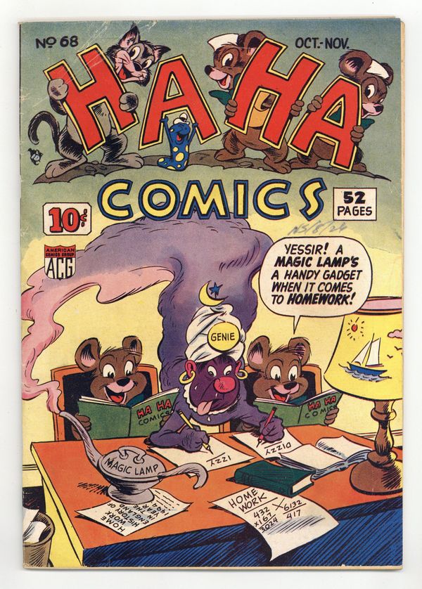 $20.50Art by Ken Hultgren and others. Funny-animal mayhem from Creston, an imprint of independent publisher ACG, with art by cartooning legend Dan Gordon. Dilly the pig gets a job selling pens – the writing kind, not the pig kind; Cleo the cat hatches a prank against Anthony the dog involving toothpaste and a smiling goldfish; Farmer Hoggans becomes a deputy and puts Hopalong Hoppity in jail for stealing carrots. Robespierre; Anthony & Cleopatra; One Jump to Freedom!; Izzy and Dizzy; Mr. Nobody; Dilly; Hopalong Hoppity; A Surprised Party; Fenwell Fox; Daniel Spaniel. 48 pages, Full Color. Cover price $0.10.