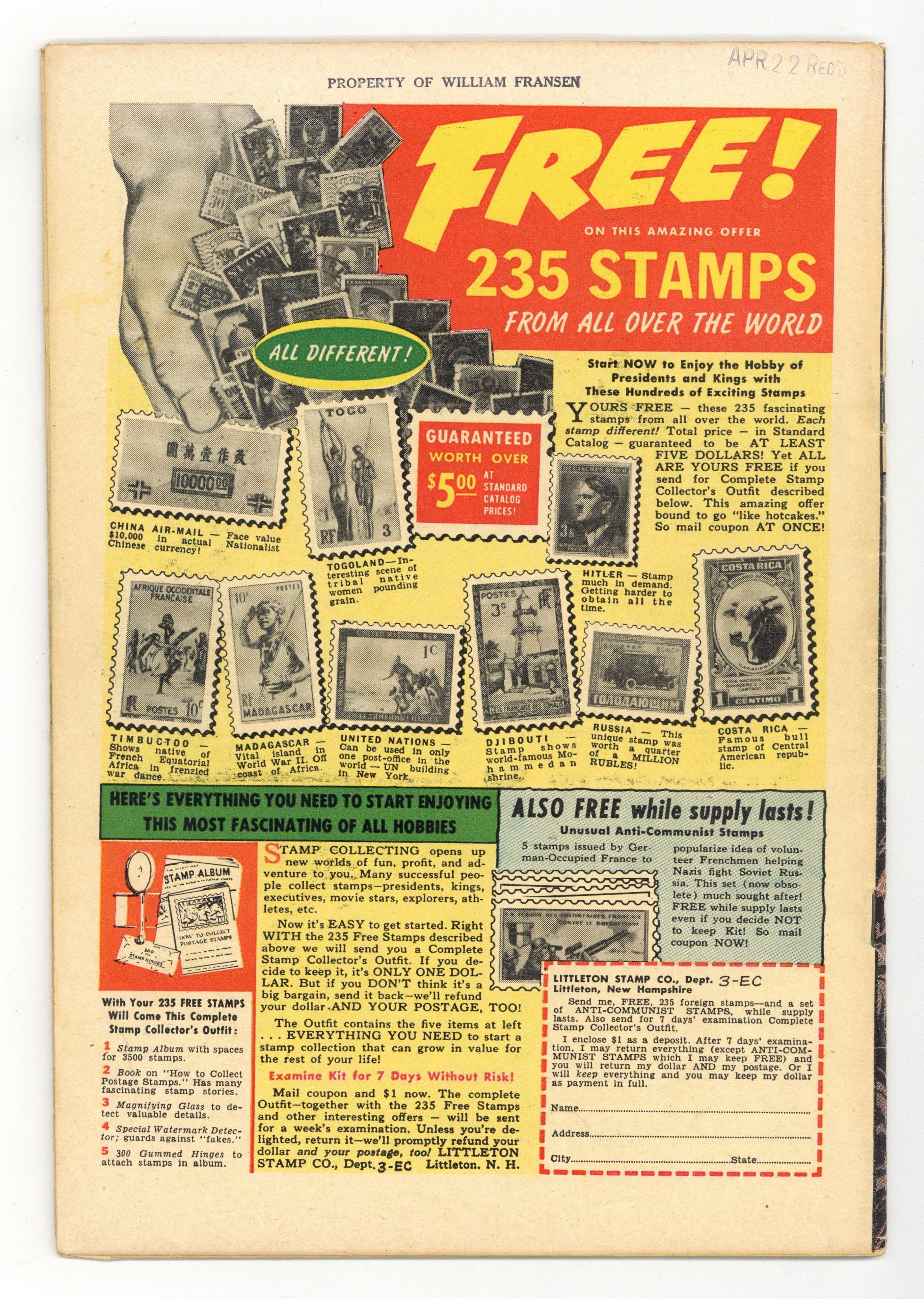 - Interior is complete. Back cover missing. Centerfold detached at one staple.