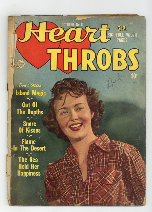 $25.00Photo Cover of Pat Paolo by Benard of Hollywood. Stories by unknown. Art by Paul Gustavson?, Charles Quinlan, Bill Ward and unknown. Featuring: "Snare of Kisses"; "Island Magic"; "Out of the Depths"; "The Sea Held Her Happiness"; and "Flame in the Desert"! Plus: Advice on Love Problems letters page by Marilyn Minton. 48 pages, full color. Cover price $0.10.