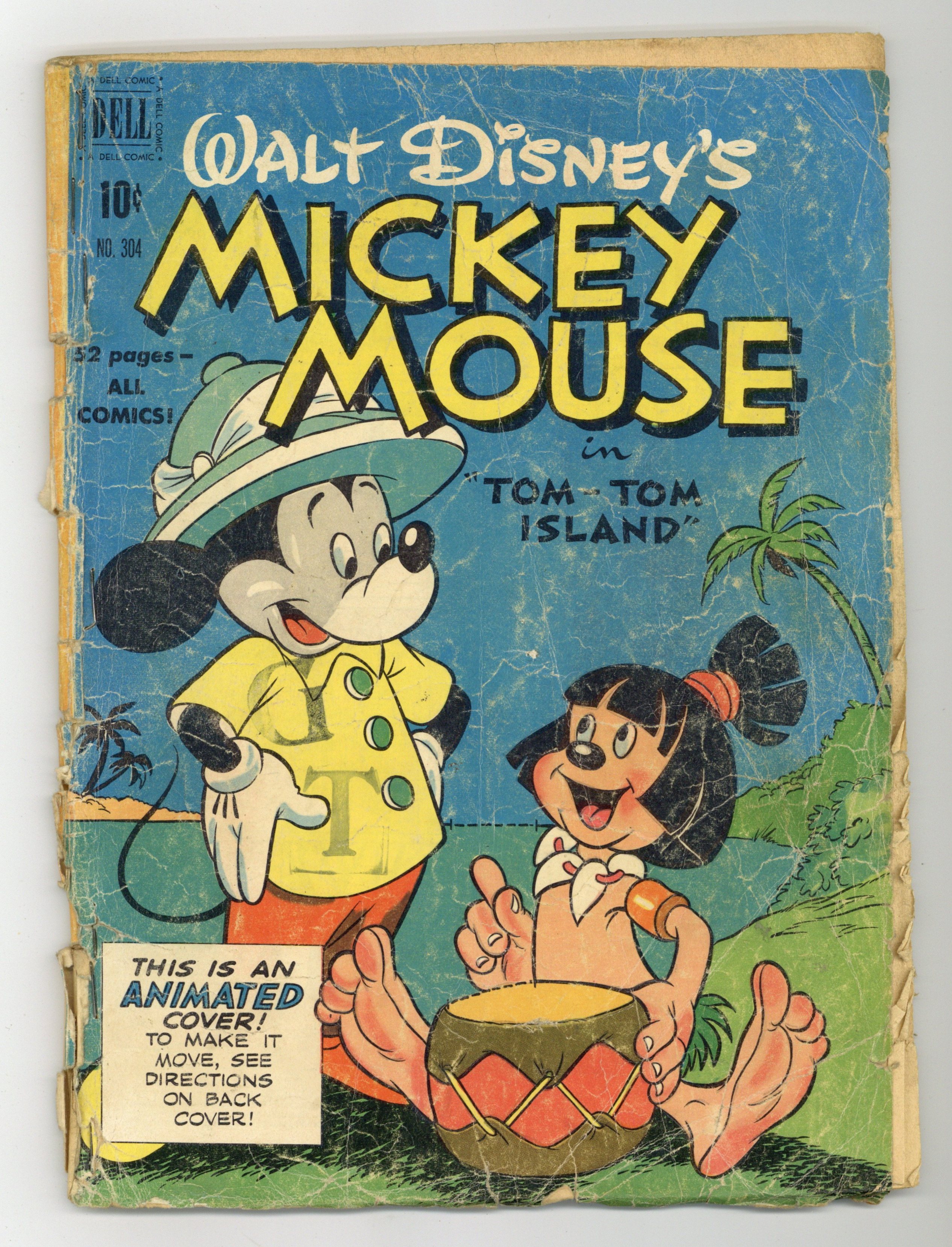 Indicia title is "Walt Disney's Mickey Mouse in Tom-Tom Island." Tom-Tom Island, pencils by Riley Thompson; Mickey receives a request from Tom-Tom Island (somewhere by Africa) that he and Goofy visit his native friends Thursday and Friday. Rescue of the Rangers, art by Al Hubbard; Mickey and Goofy become forest rangers at Sleepy Valley National Park; They soon learn that the last four rangers at the park have disappeared and receive a threat that they might be the next ones. 52 pages, full color. Cover price $0.10.