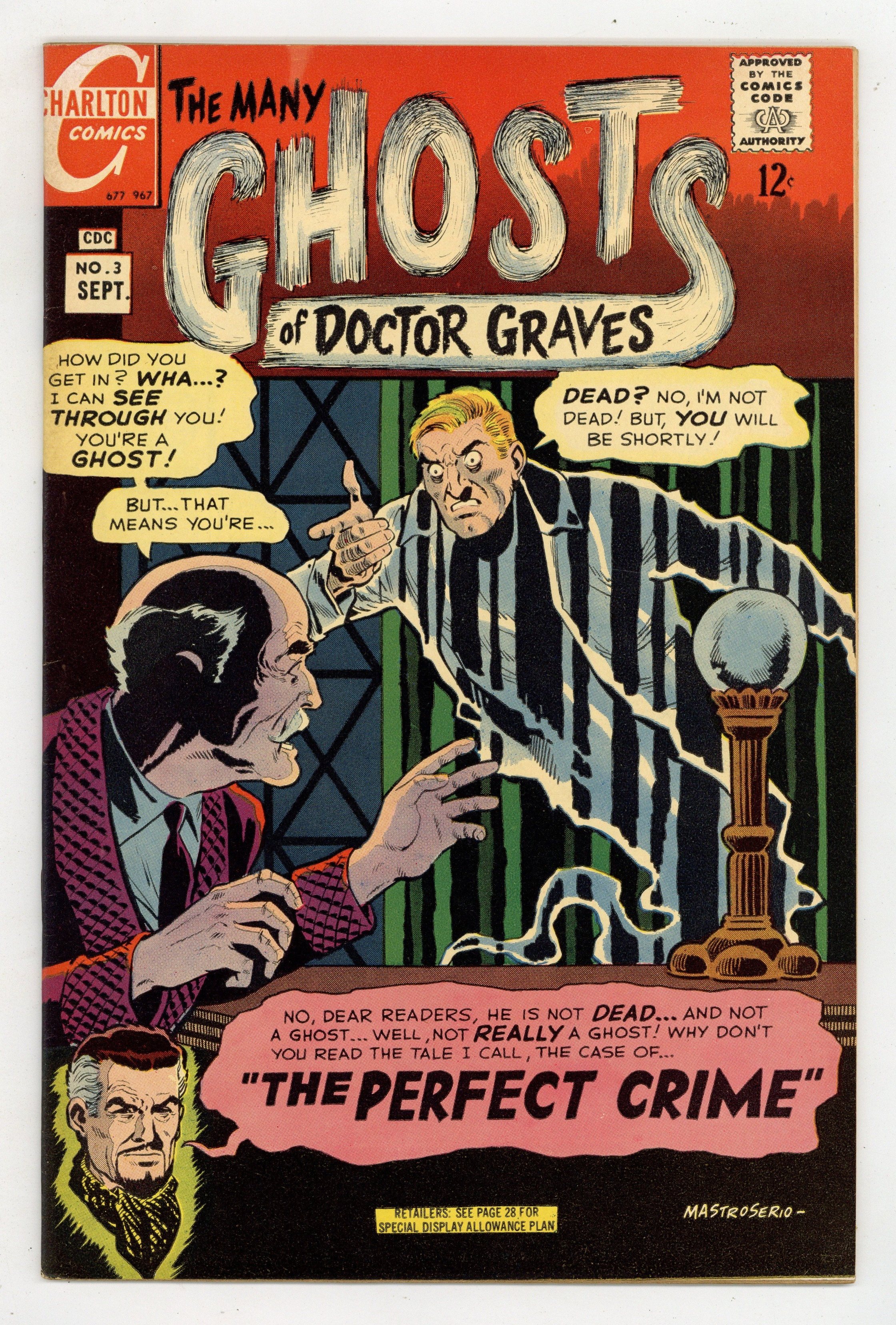 No, dear readers, the intruder on the cover is not dead...and not a ghost...well, not really a ghost! Featuring: 8 page Dr. Graves story "The Perfect Crime [Case 533]" written by Steve Skeates and drawn by Pat Boyette. Plus: 1 page Dr. Graves contents page drawn by Pat Boyette; 8 page Dr. Graves story "His Brother's Ghost" drawn by Charles Nicholas and Vince Alascia; 1 page text article "Martian Mathematics" written by Harold Gluck; 8 page Dr. Graves story "The Ghost of Slater Lake [Case No.805]" drawn by Bill Montes and Ernie Bache. Cover by Rocke Mastroserio. Cover price $0.12.