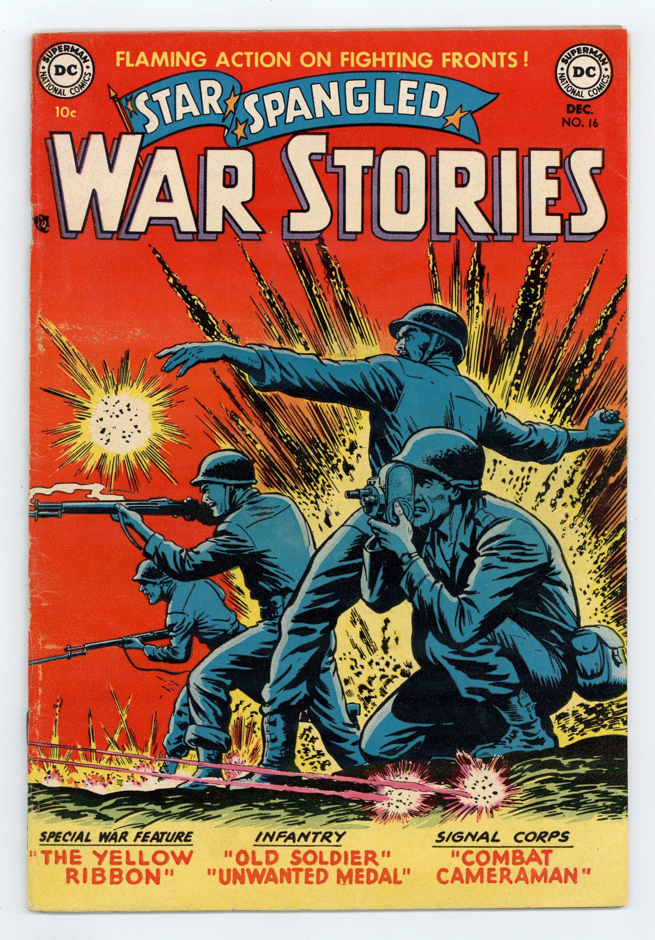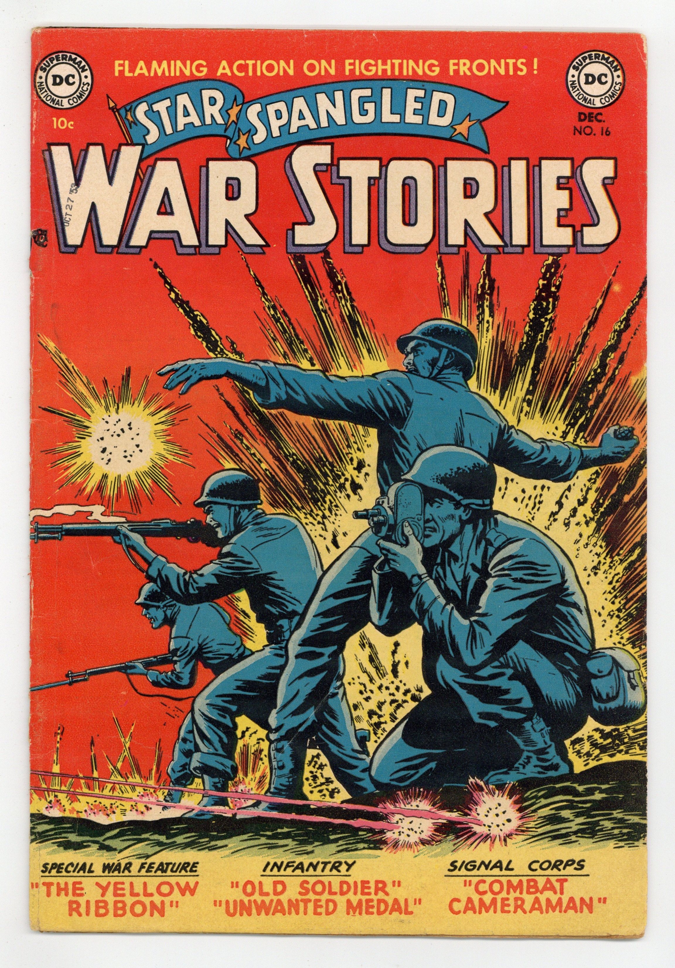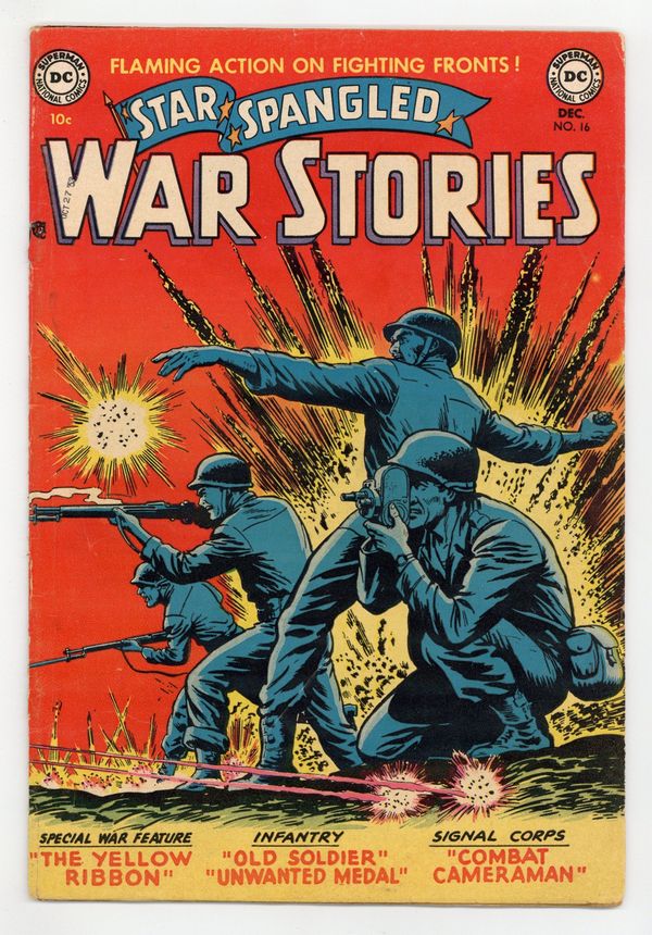 Cover pencils by Curt Swan, inks by Ray Burnley. The Yellow Ribbon, script by Harry Harrison, art by Jerry Grandenetti. Old Soldier, script by Art Wallace, art by Jim McArdle. Unwanted Medal, script by Art Wallace, art by Ramona Fradon. Combat Cameraman, script by France Herron, pencils by Curt Swan, inks by Joe Giella. Private Pete filler page by Henry Boltinoff. Rapid Fire humor story. 36 Pages, Full Color. Cover price $0.10.