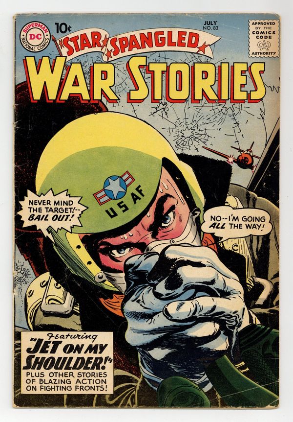 Cover art by Jerry Grandenetti. Jet On My Shoulder, script by Robert Kanigher, pencils by Ross Andru, inks by Mike Esposito. War Doesn't Sleep, script by Bob Haney, art by Jack Abel. Khaki-Yaks humor page by Henry Boltinoff. Army Almanac filler page, script and pencils by Morris Waldinger, inks by Tom Nicolisi. Private Diary humor page by Irwin Hansen. 36 Pages, Full Color. Cover price $0.10.