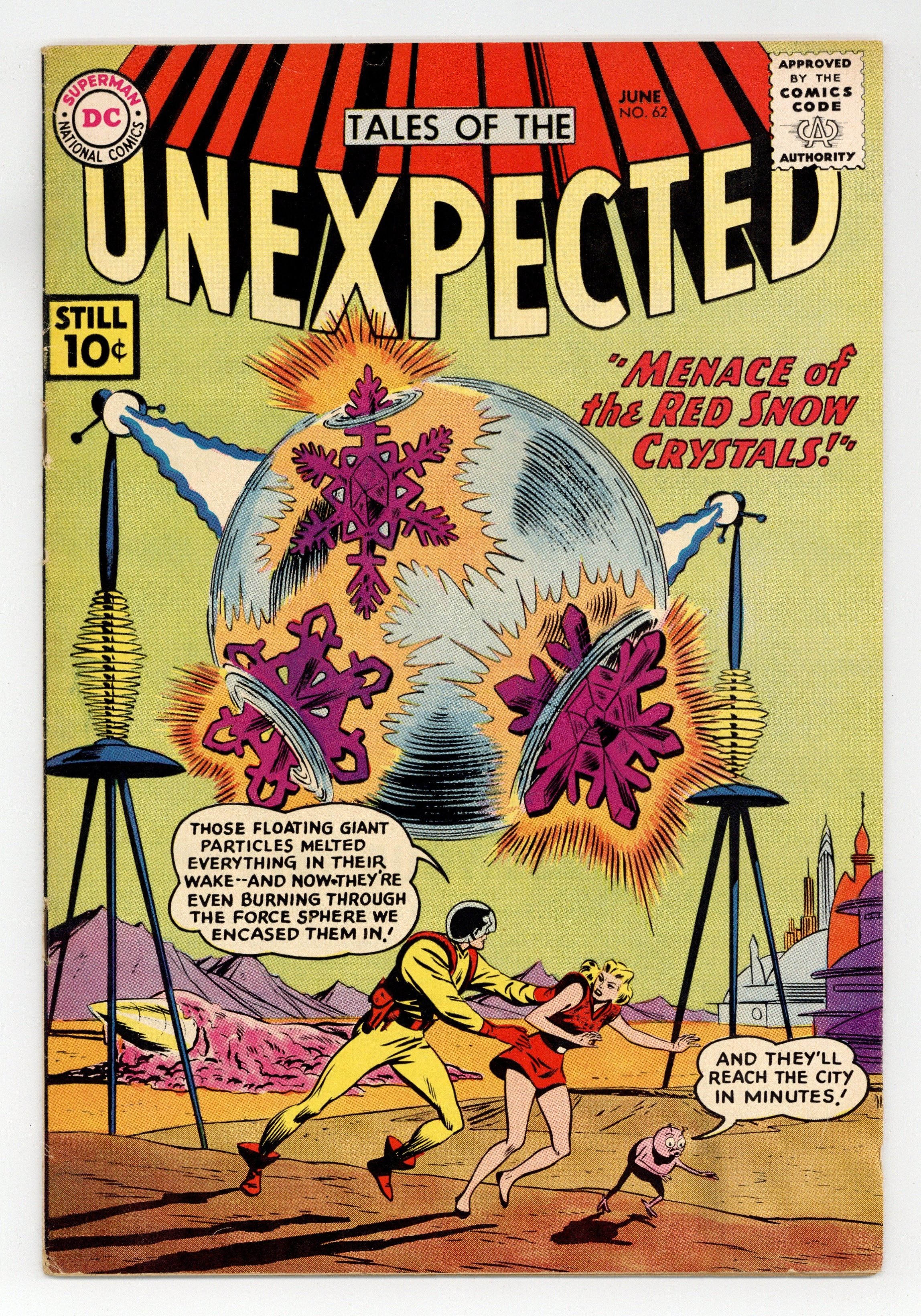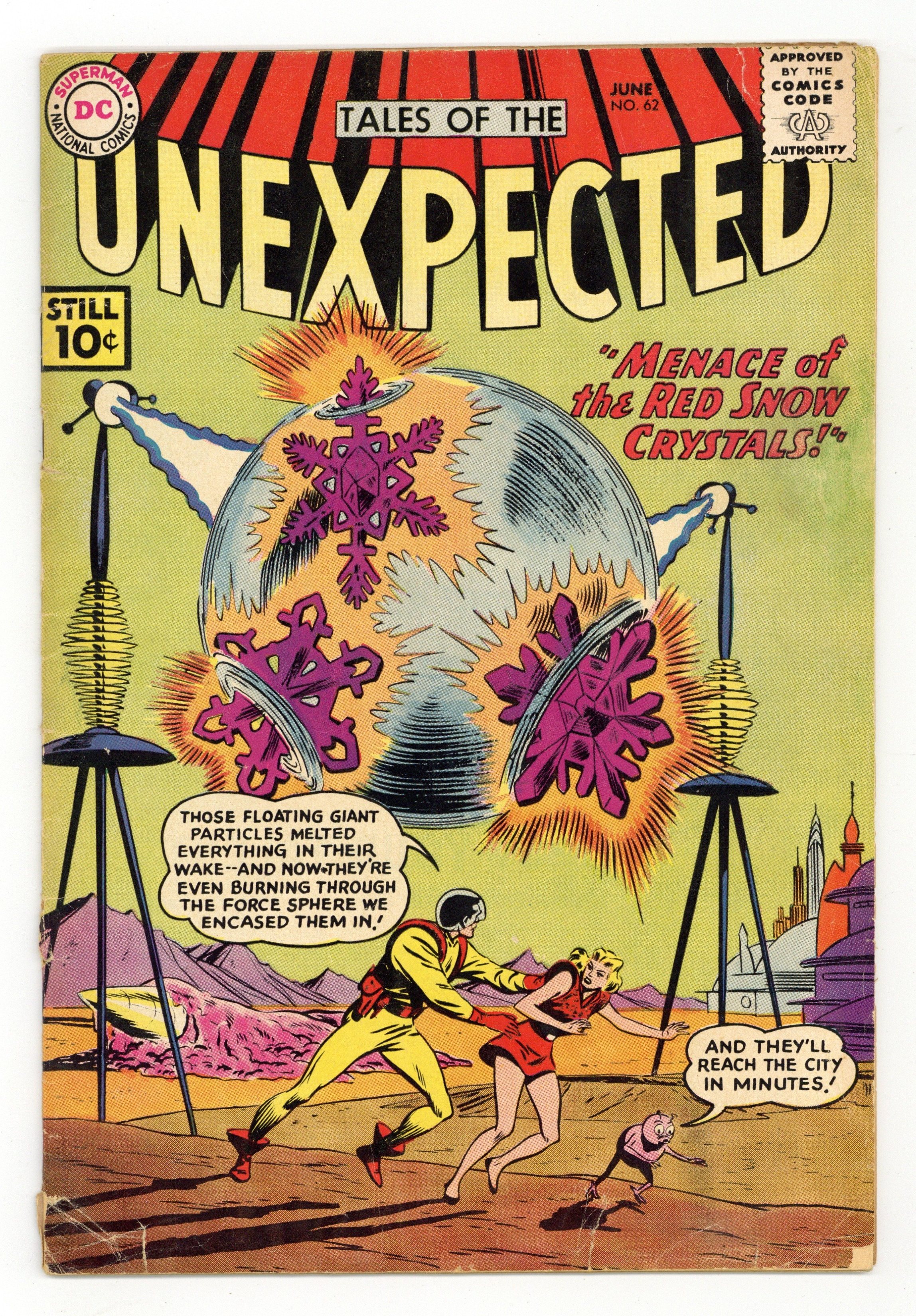 Cover art by Bob Brown. The Menace of the Red Snow Crystals starring Space Ranger, script by Arnold Drake, art by Bob Brown. Parents Have Rights, Too! public service announcement, script by Jack Schiff, art by Bernard Baily. The Alien Earthmen, art by Ruben Moreira; Astronauts returning from a visit to an alien world suddenly begin to grow feathers. On the Planet Og humor page by Henry Boltinoff. Showdown on Asteroid UL-2 text story. The Case of the Rampaging Robots, art by George Roussos. 36 Pages, Full Color. Cover price $0.10.