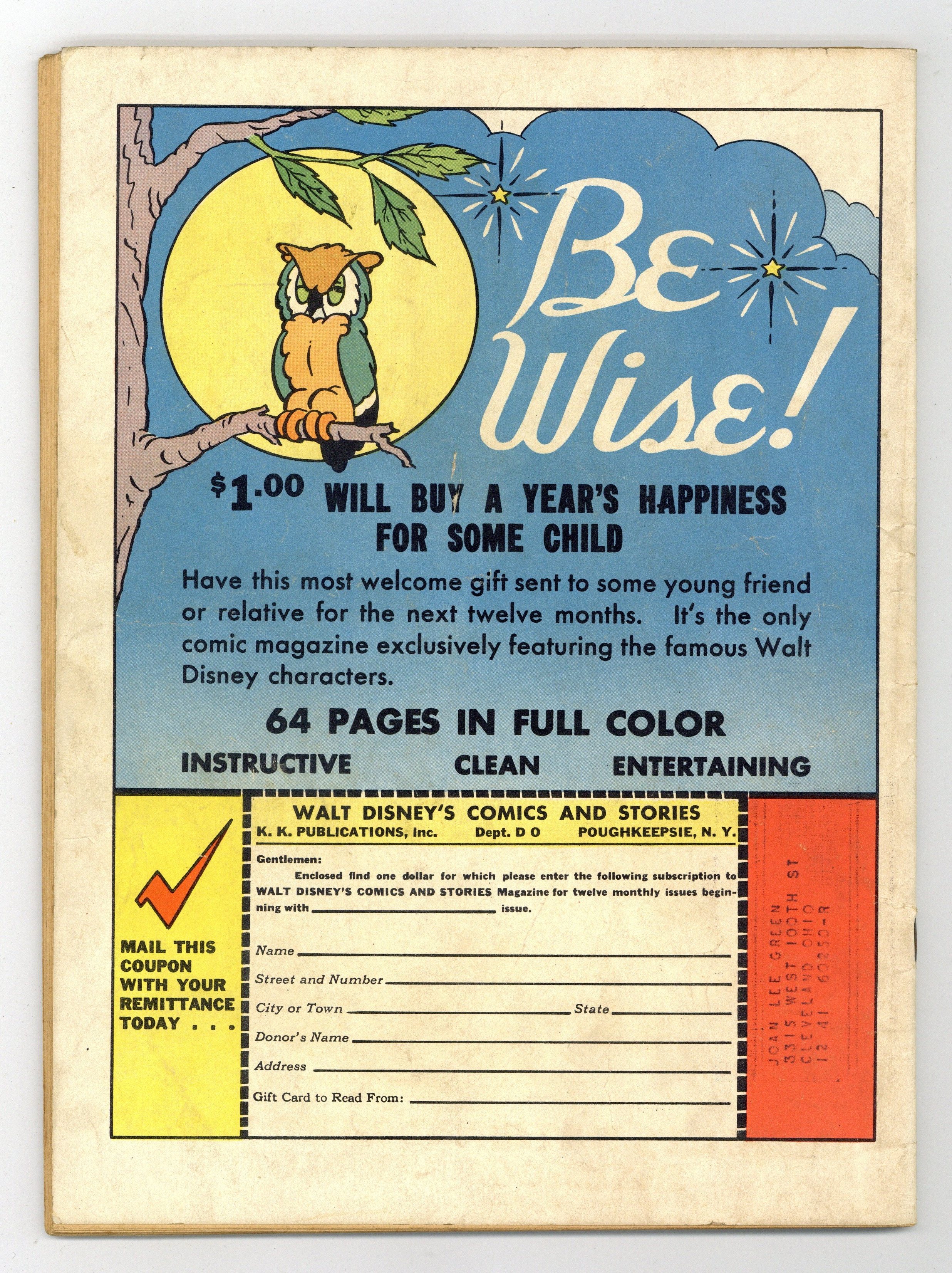 Tags: Disney Ducks & MicePublished Oct 1941 by Dell/Gold Key.$275.00- Writing on interior pages.