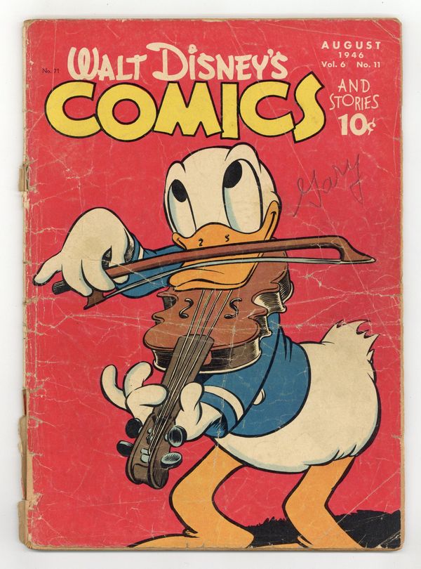 Tags: Disney Ducks & MicePublished Aug 1946 by Dell/Gold Key.$22.00- 3" spine split from the bottom. Cover detached.