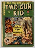 Cover by Syd Shores. "The Horrible Hermit of Hidden Mesa!"; Chet Laribee has spent the past few months capturing wild horses when he is suddenly confronted by Lizard Galt and his gang who force him to flee and take his horse; Elsewhere, Chet's lover Julie is racing her horse to find him crossing paths with Two-Gun Kid and his sidekick Rusty Randolph. Doc Holiday Scrapbook of the West page. "Badge of Honor" text story. "The Hunter and the Hunted!", art by Russ Heath; Kid Colt takes a rest while on the run from the law but is concerned that lawman Carlos Grimm - known for always getting his man - is in charge of the area; As his rotten luck would have it, Kid Colt is caught by Carlos Grimm and the pair is locked in a Mexican stand-off. Death Valley Scrapbook of the West page. Wild Bill Hickock Scrapbook of the West page. "Trapped Between Two Fires!"; There is a family feud going on between the Bensons and Waltons, and it rages across their properties which are divided by a stream; Passing through the area, Two-Gun Kid and his sidekick Rusty Randolph get caught in the crossfire. 52 pgs., full color. $0.10. Cover price $0.10.
