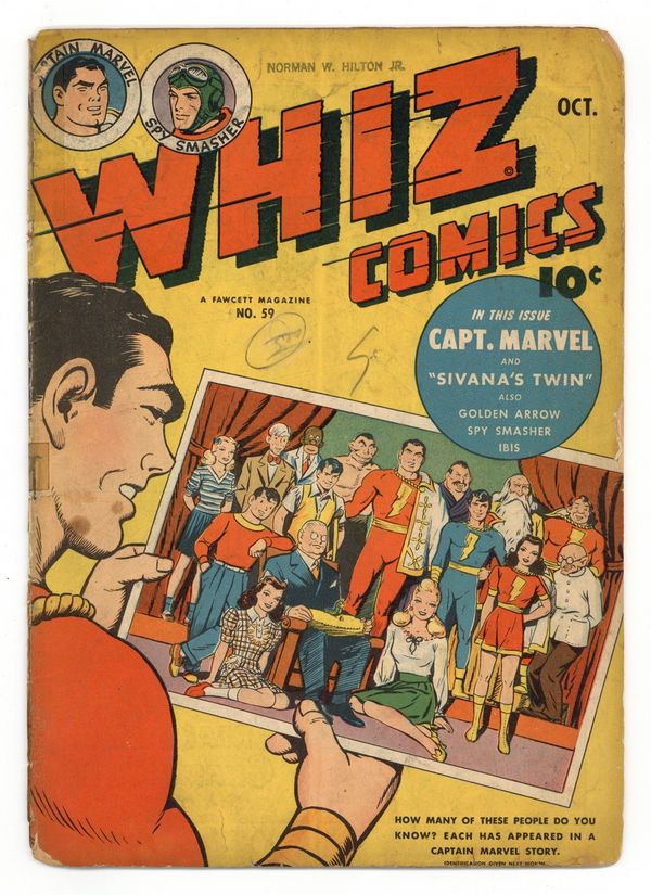 Cover by C. C. Beck and Pete Costanza. Stories and art by Otto Binder, C. C. Beck, Alex Blum and Marc Swayze. The Fawcett comic that introduced the original Captain Marvel (Shazam) to the world. Billy Batson meets Reginald Q. Dishlather, who looks exactly like evil Dr. Sivana...or is this just another Sivana plot? Golden Arrow tries to save the Little Creek tribe from an epidemic by convincing them to listen to their med-school-educated chief's son, rather than the superstitious tribal shaman. Dare Devil Luke seeks Ibis's help after a wizard threatens to sabotage his entry into a dangerous sports contest. Captain Marvel: Sivana's Twin; Old Ironfoot; Golden Arrow: The Murderous Medicine Man; Wicky and O'Shawnessy; Spy Smasher: The Underpaid Spies; Ibis the Invincible: Ibis Makes a Pact with the Devil!. 32 pages, Full Color. Cover price $0.10.