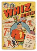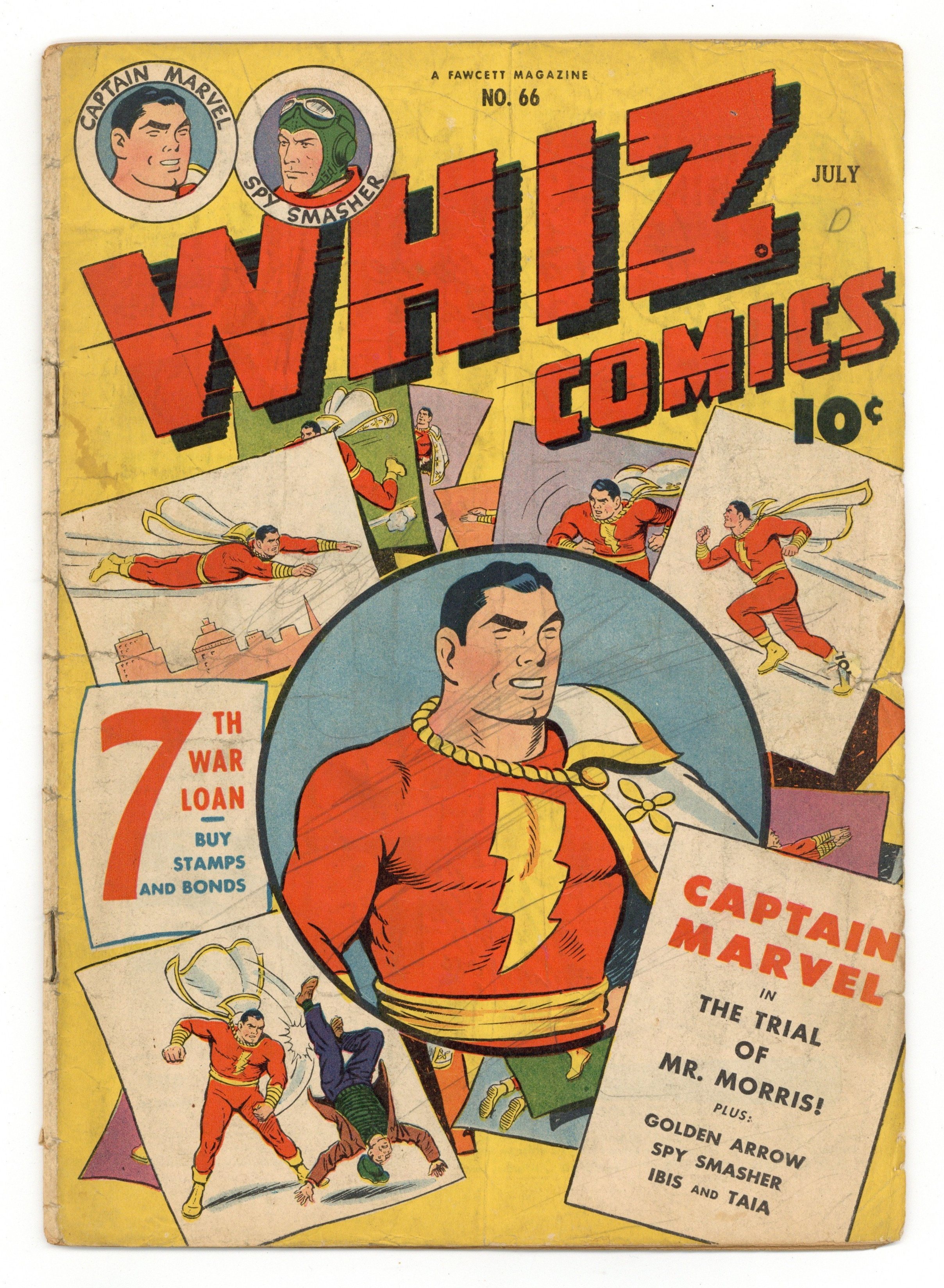 Cover by C.C. Beck. Stories and art by Basil Wolverton, Gus Ricca, and Harry Parkhurst. The Fawcett comic that introduced the original Captain Marvel (Shazam) to the world. Golden Arrow investigates strange notes sent to the sheriff's office from people who have no memory of sending them. A pianist gets the transplanted hands of a murderer, but the Ibistick inadvertently allows the executed killer to take over the mind of the musician. Plus a "Culture Corner" strip by legendary cartoonist Basil Wolverton, featuring useless but hilarious advice on " How to Improve Your Posture." Captain Marvel vs. Billy Batson in the Trial of Mr. Morris; Golden Arrow: Letter of the Law; Horn Paul Hears from Home; The Culture Corner; Spy Smasher vs. Pie Masher; Horace Hotstuff; Ibis the Invincible: The Hands of Horror. 32 pages, Full Color. Cover price $0.10.