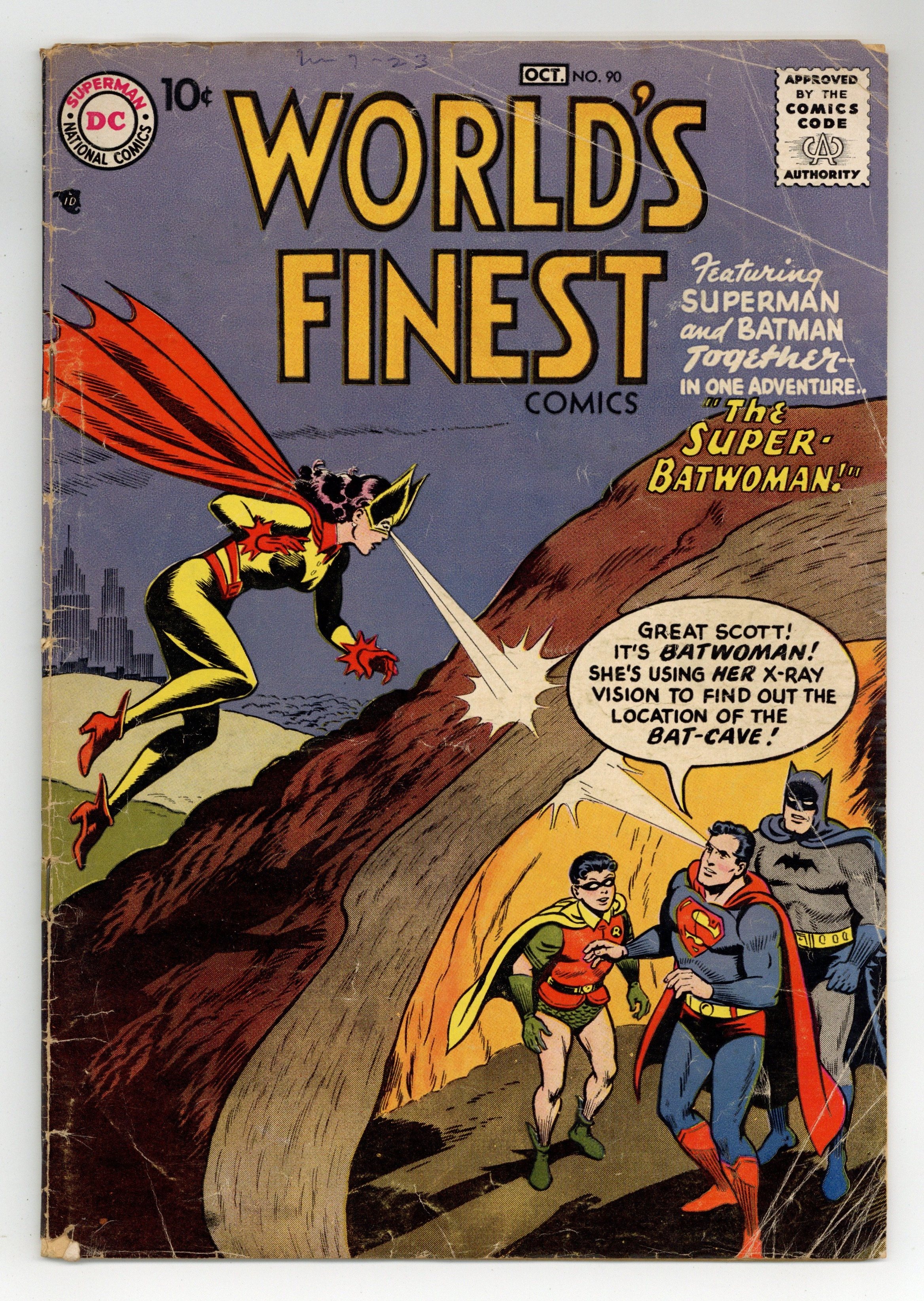 Cover pencils by Curt Swan, inks by Ray Burnley. The Super-Batwoman starring Superman and Batman, script by Edmond Hamilton, pencils by Dick Sprang, inks by Stan Kaye; Batwoman takes a capsule created by Jor-El that gives her super powers for 24 hours; She uses that time to try to find out Batman and Superman's secret identities. The Amazing Archer from Mars starring Green Arrow, art by George Papp. Danger: Prejudice At Work public service announcement, script by Jack Schiff, art by Ruben Moriera. The Shell Hunters text article. The Riddle of the Mystery Tracker starring Tomahawk, art by Fred Ray. 36 Pages, Full Color. Cover price $0.10.